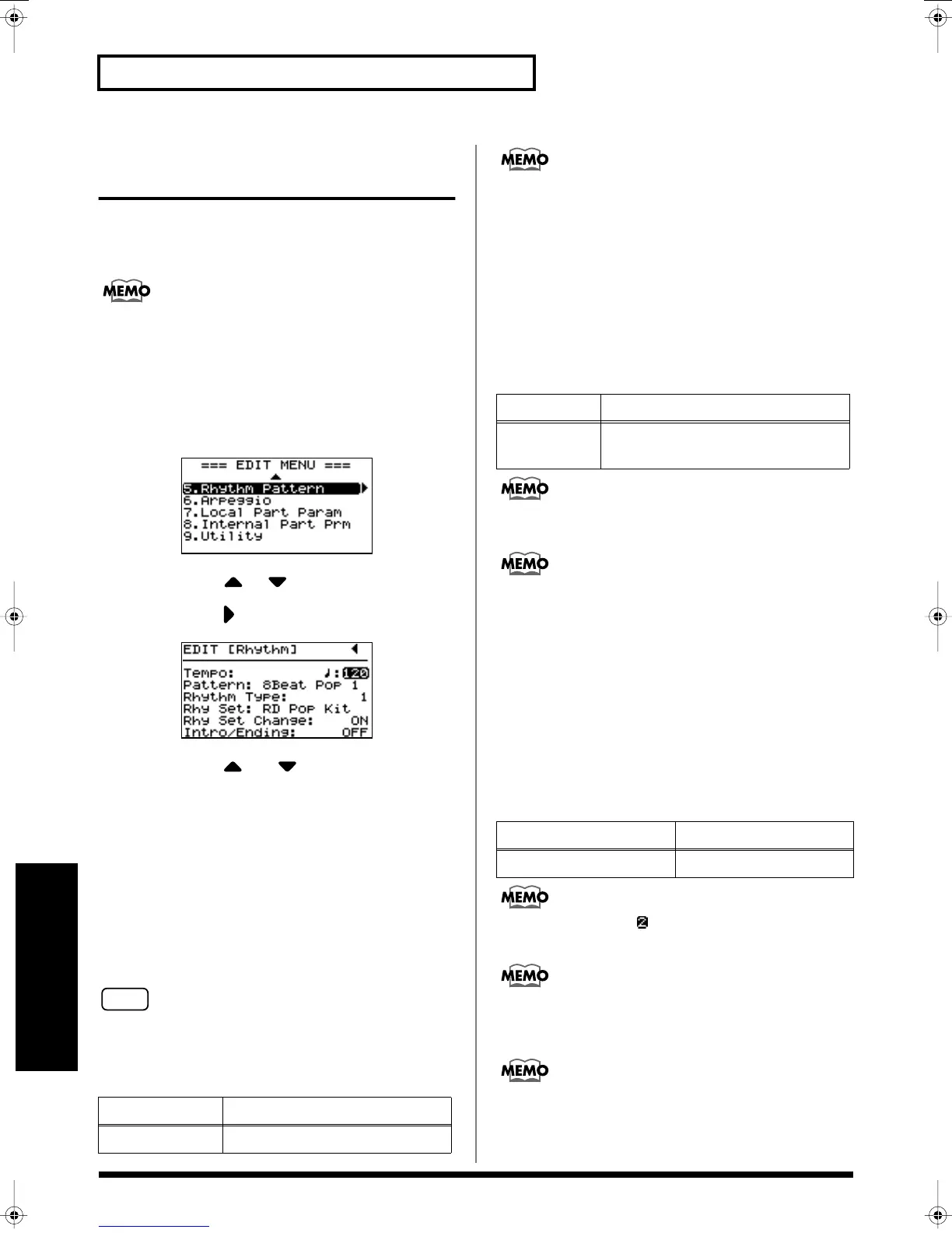 Press CURSOR [ ]/[ ] to select “5.Rhythm.”