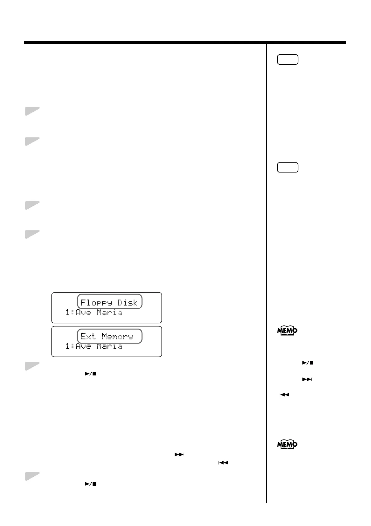Press the [Song] button one or more times to select “Ext Memory”