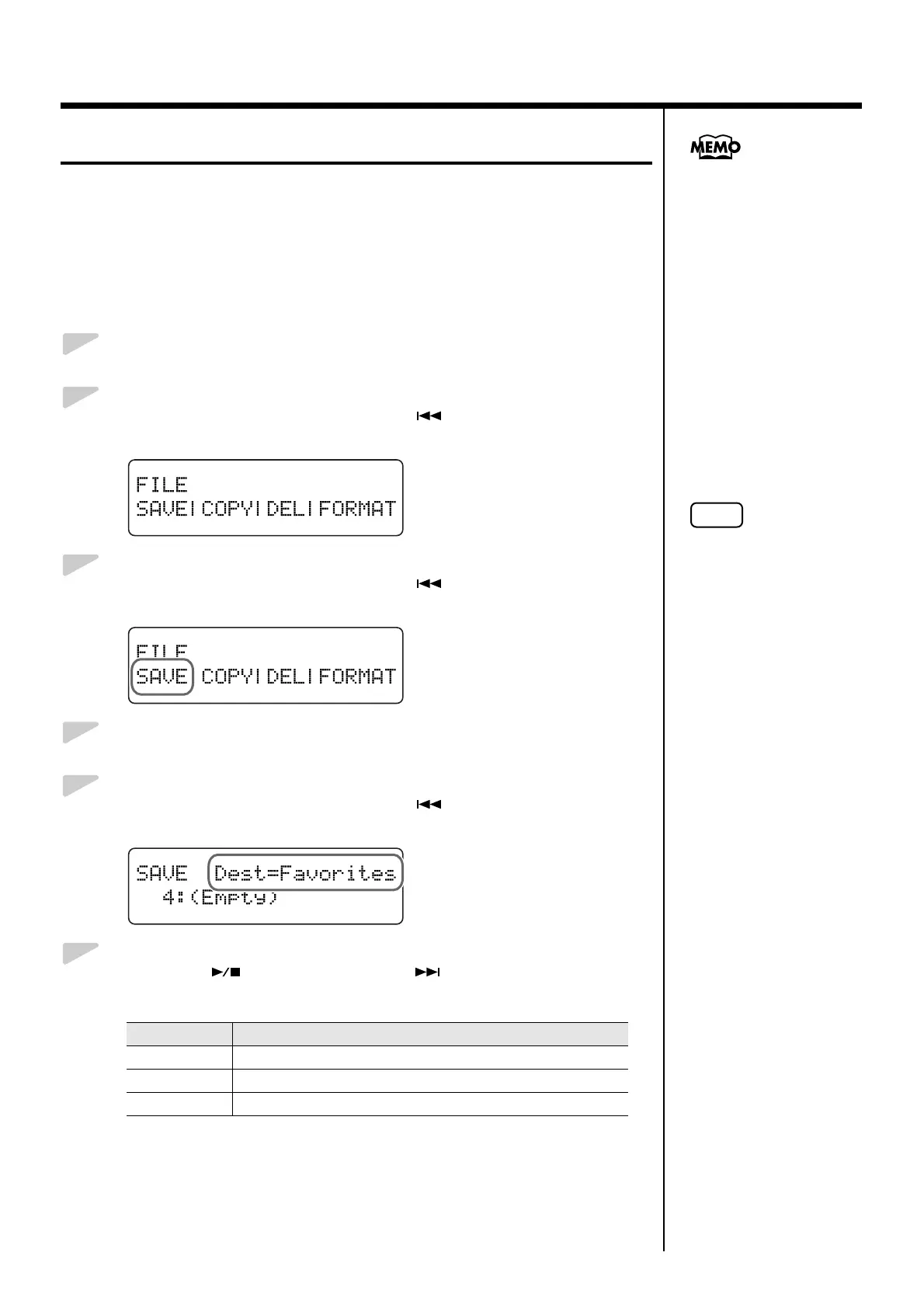 You can save recorded performances to the RG-3’s “Favorites” and to USB