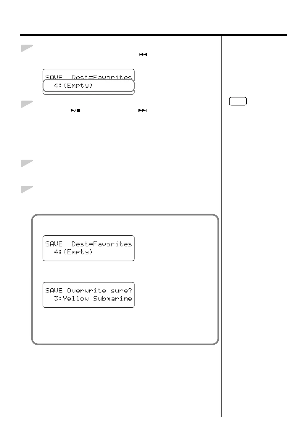To delete the saved song and replace it by saving the current song, press the [Enter]