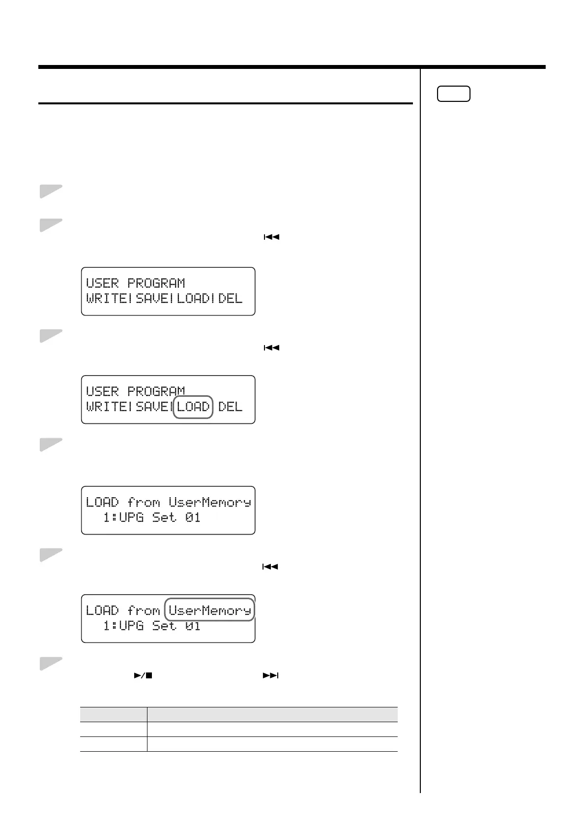 You can load sets of User Programs saved in User Memory (p. 25) or to USB
