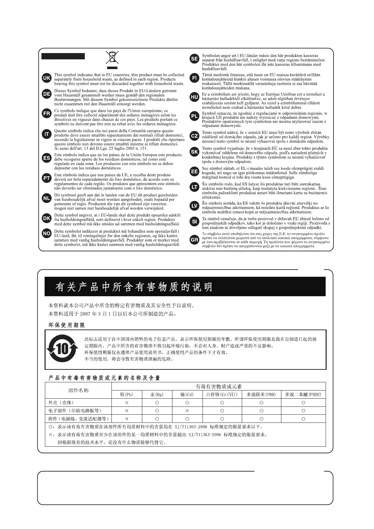 Roland RH-A7 - Environmental Information; EU Waste Disposal; China RoHS Information; California Proposition 65 Warning