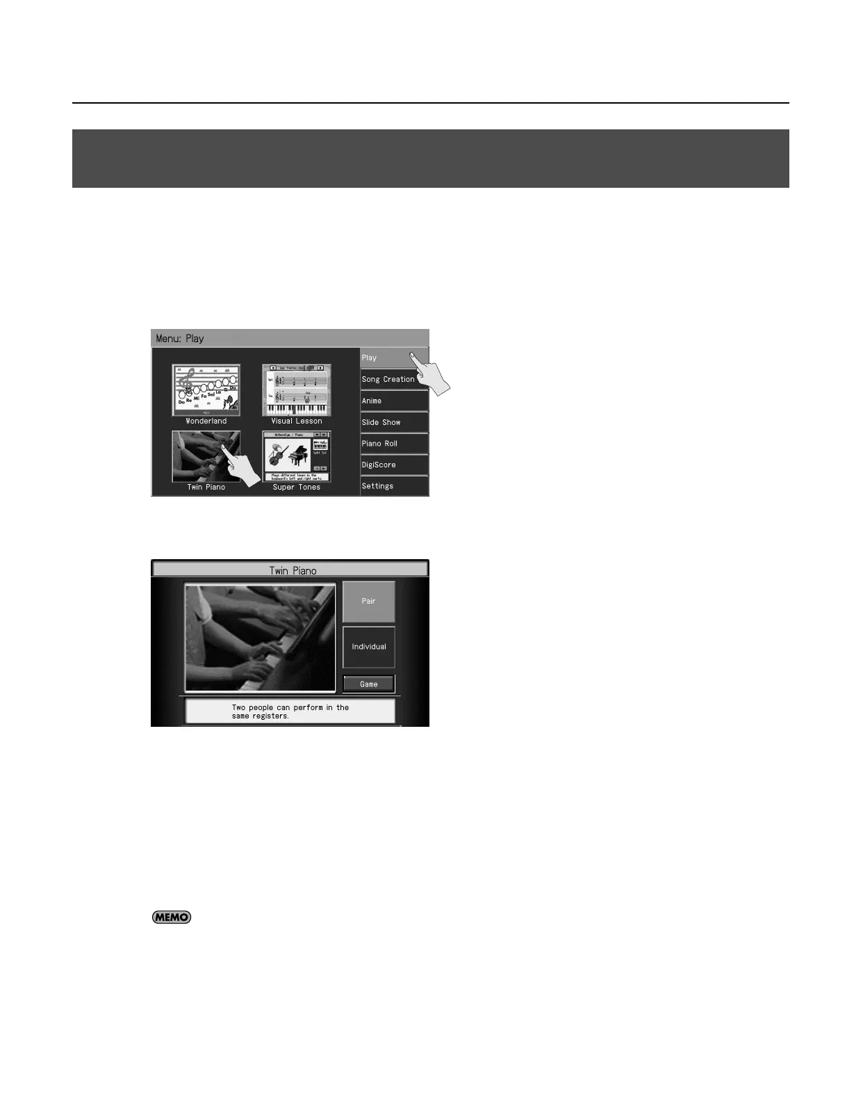 By dividing the keyboard into two sections, you can use the instrument as though they were two pianos.