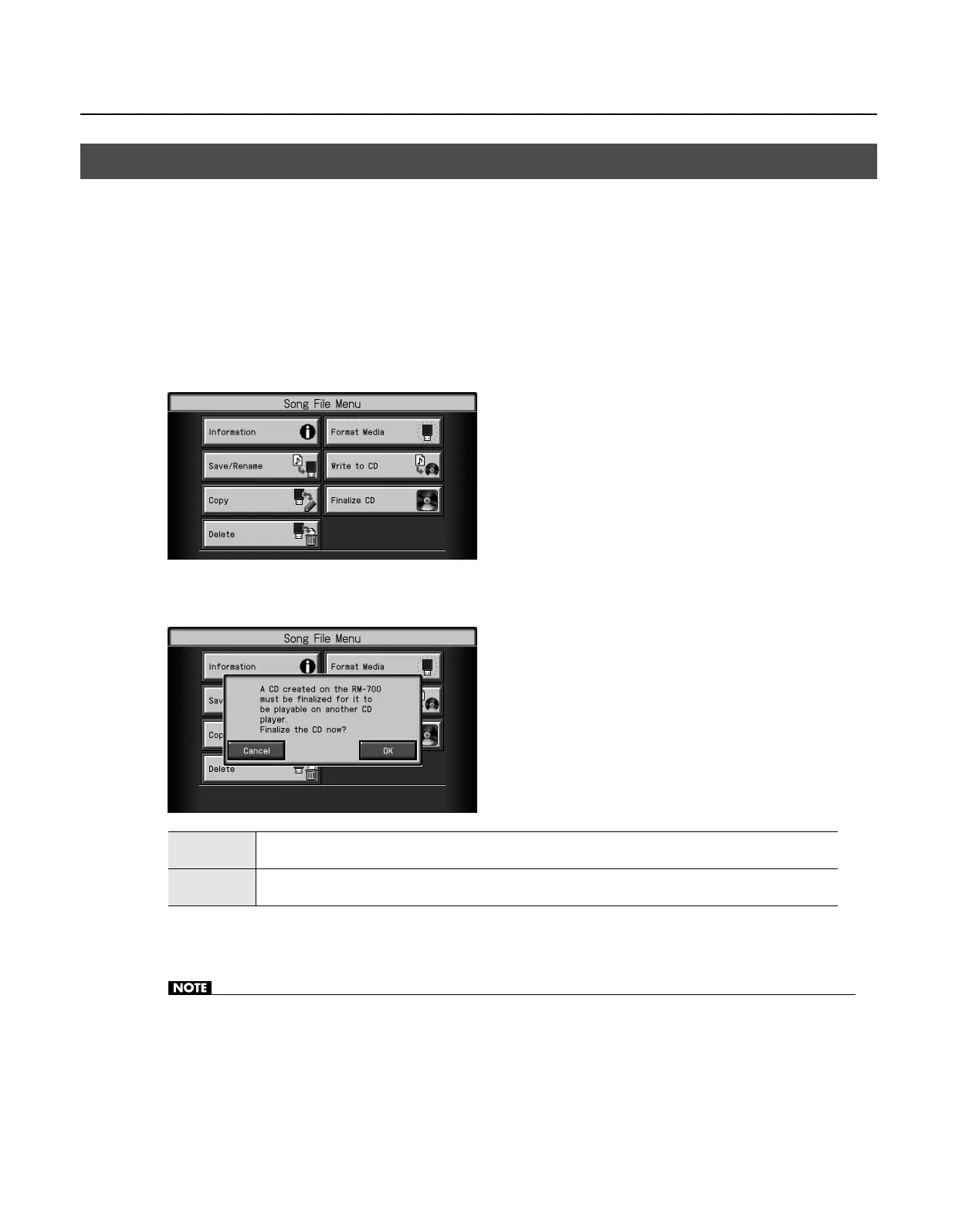 Finalization will begin, and when it is completed you will return to the Song File Menu screen.