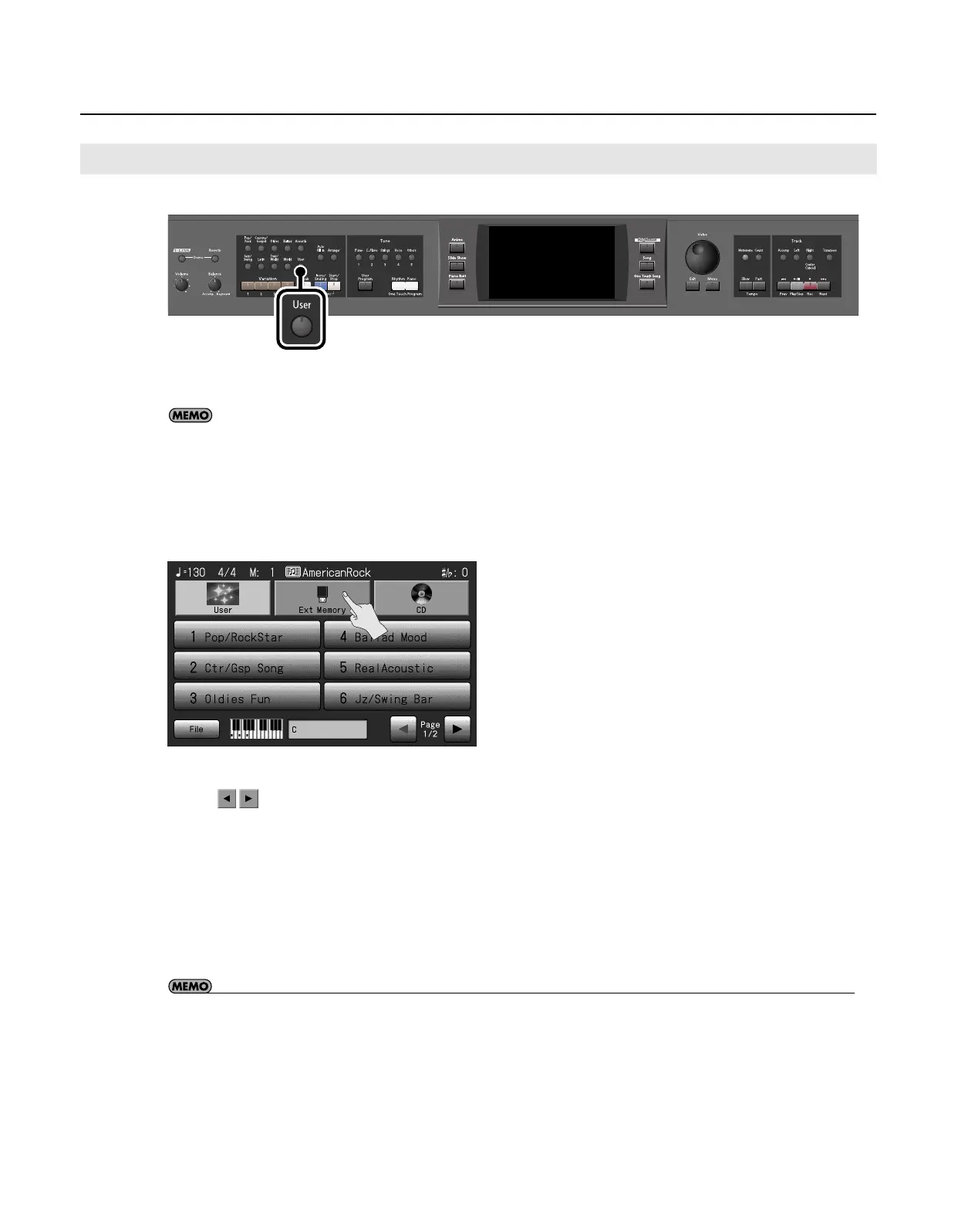 • If you copy Music Styles from USB memory or floppy disk into user memory, you’ll be able to access those Music Styles simply by
