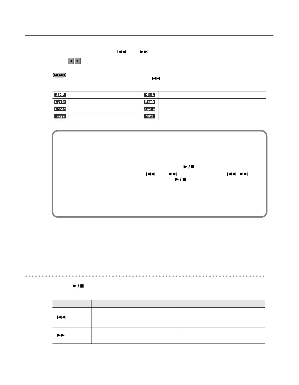 Pressing this while the song is playing will rewind the song.