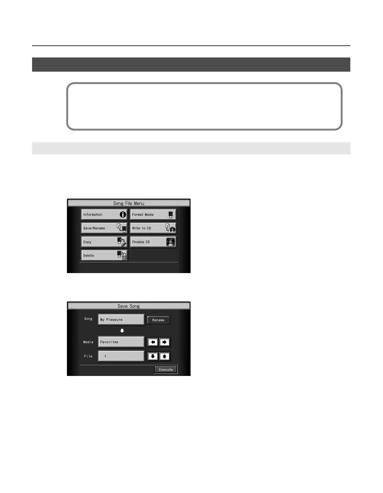 The “Song File Menu” screen appears.