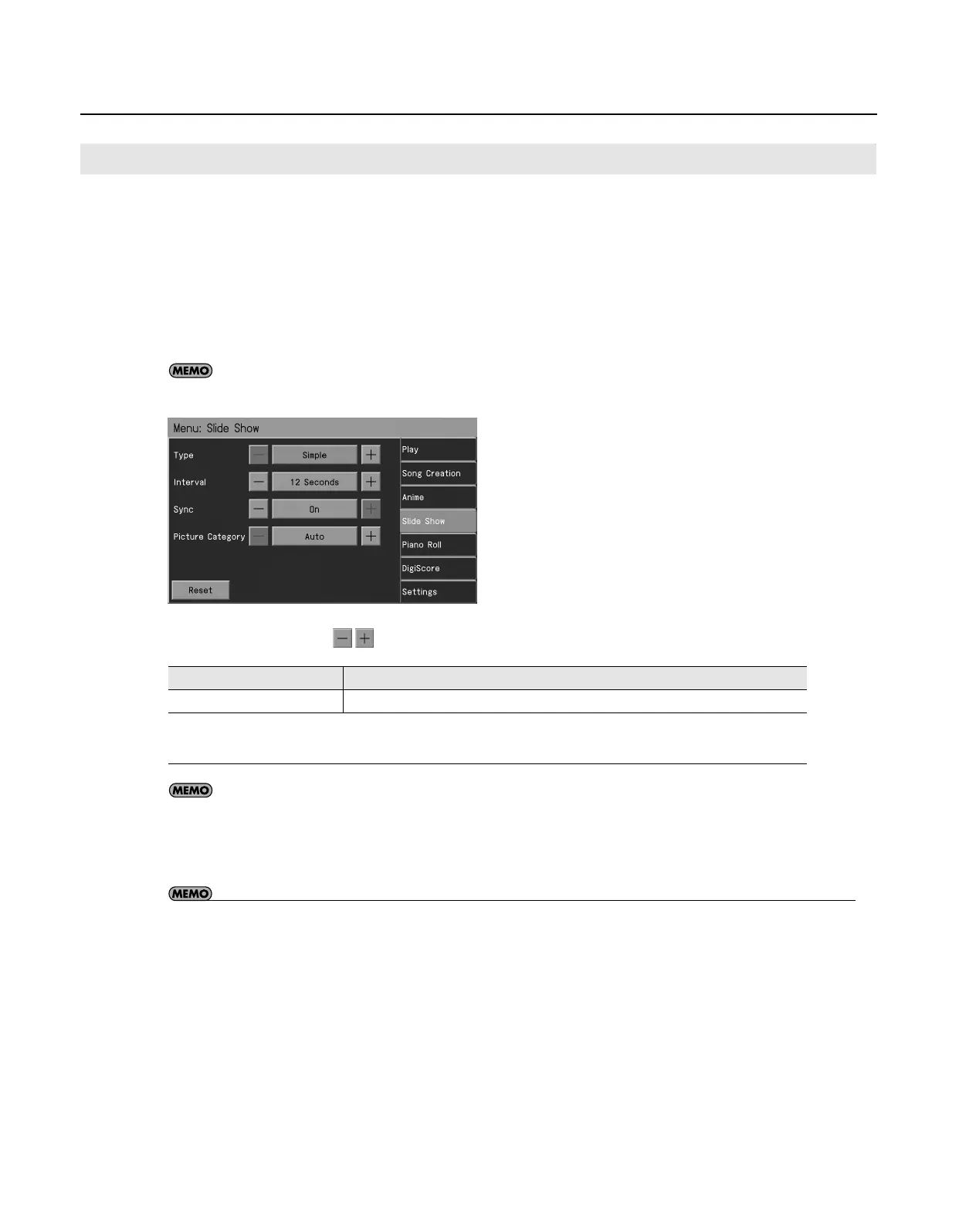 • For information on the other parameters that can be set in the “Slide Show” screen, refer to “Slide Show Settings” (p. 173).