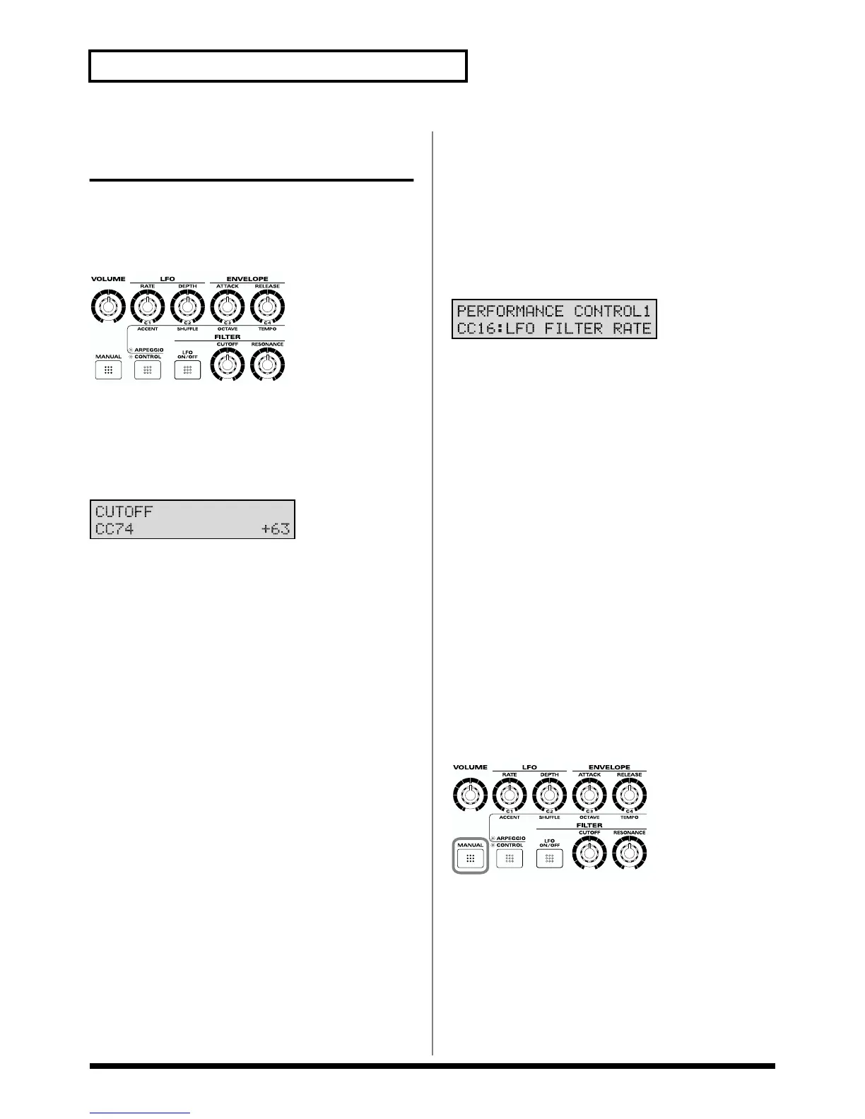 [LFO ON/OFF] is on, the LFO changes the Filter Cutoff