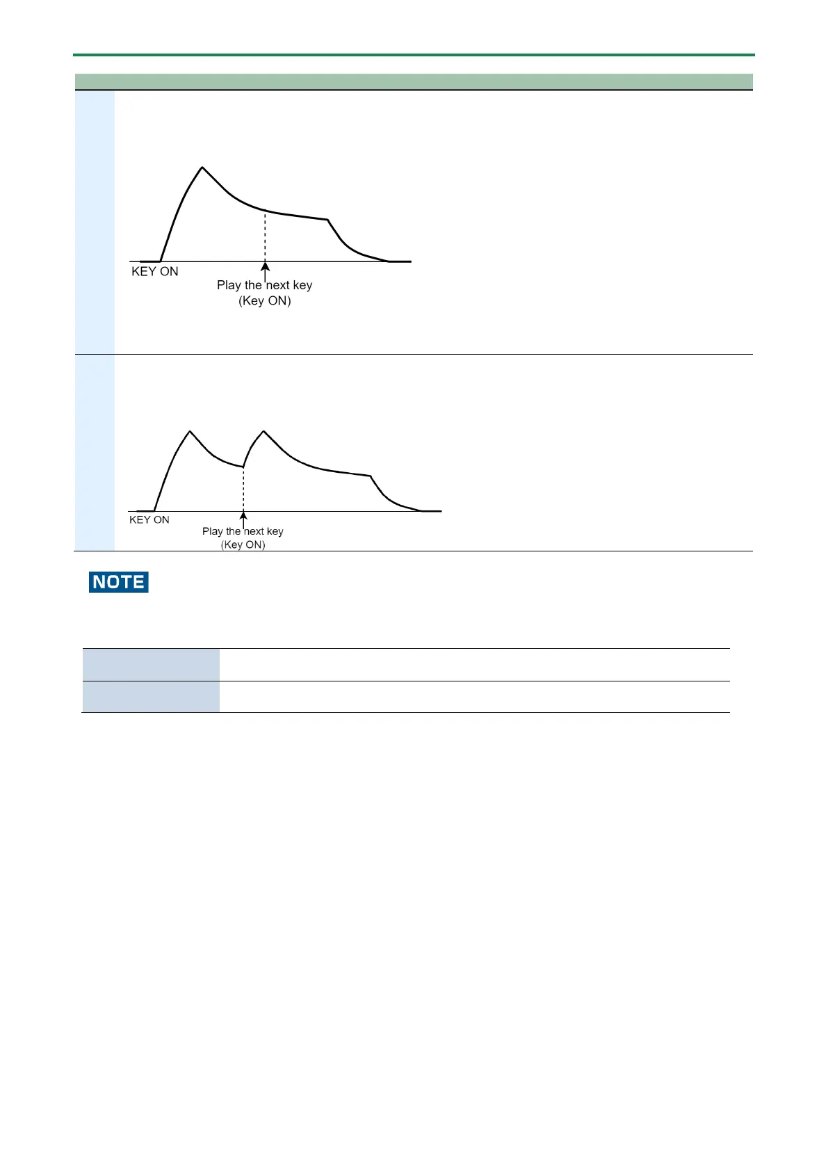 You can use the Note Priority setting (“n.Pri” in the menu) to select between giving priority to