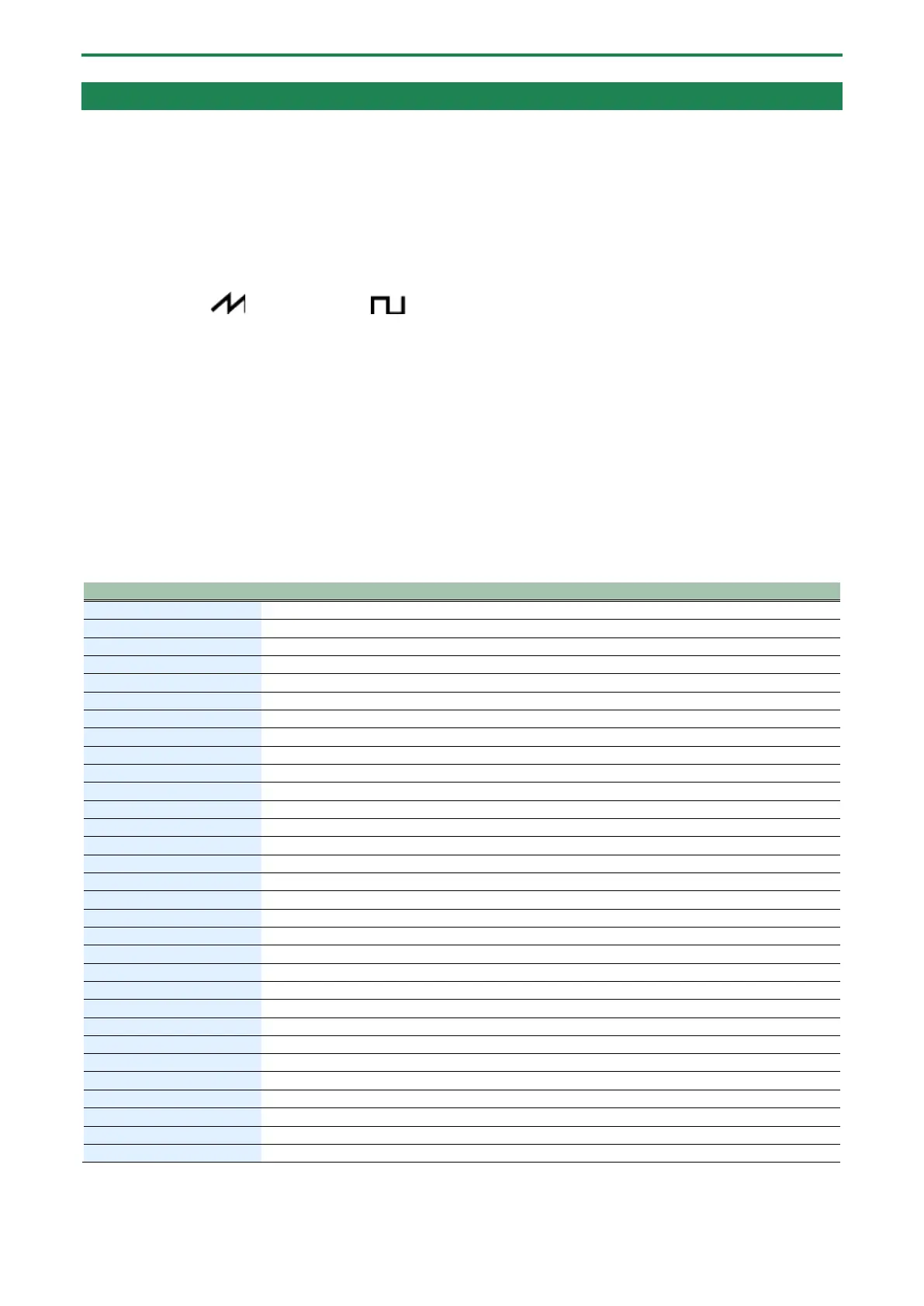 The waveforms from (sawtooth wave) to (square wave) are LFO output waveforms. These waveforms control the