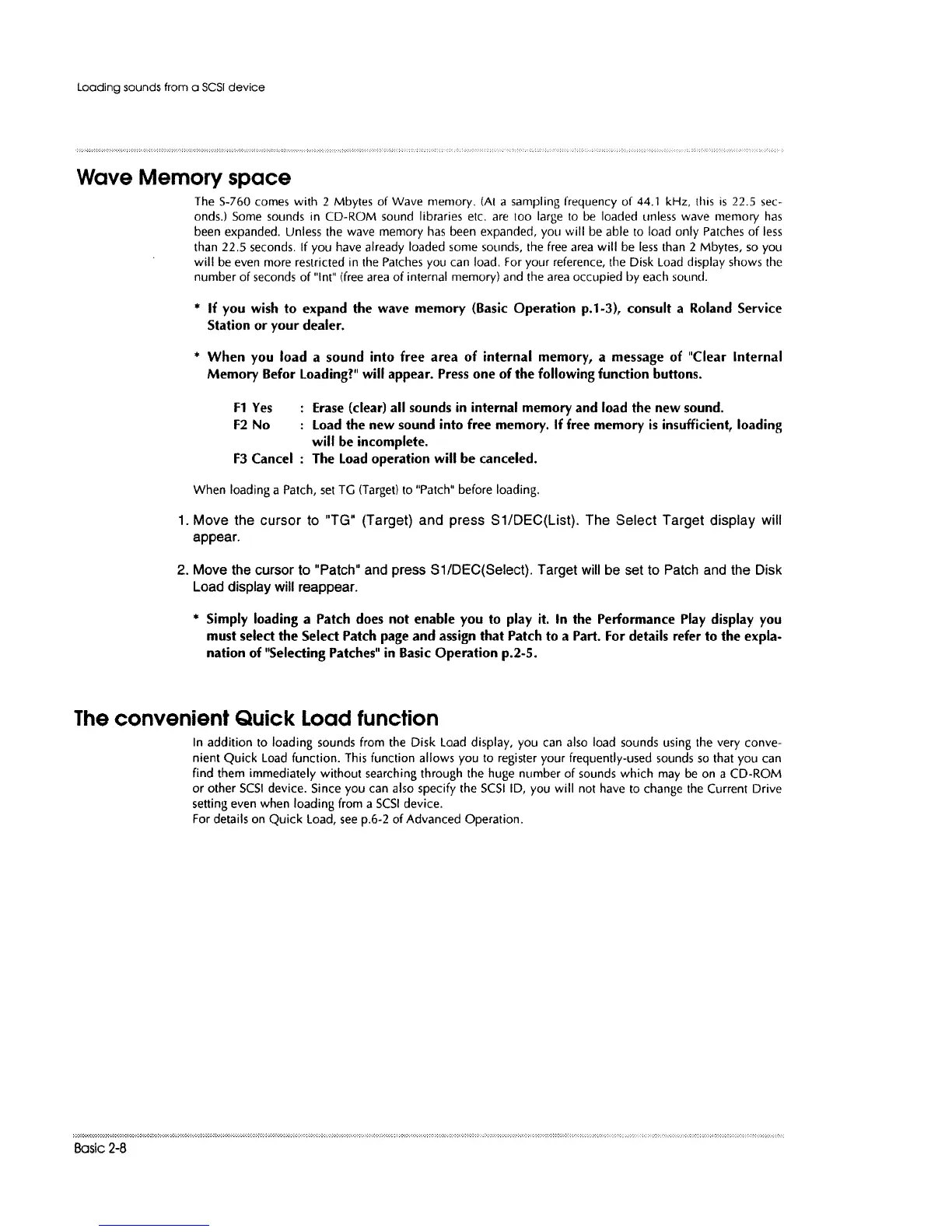 Roland S-760 - Wave Memory Space; The Convenient Quck Load Function
