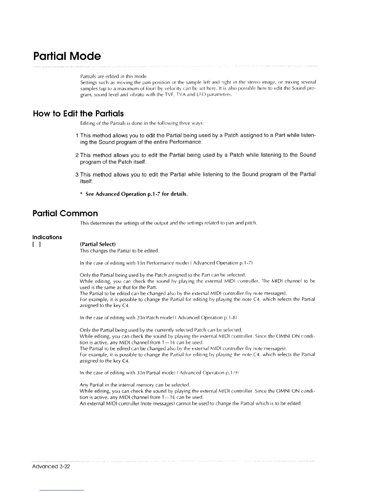 Roland S-760 - Partial Mode Parameters