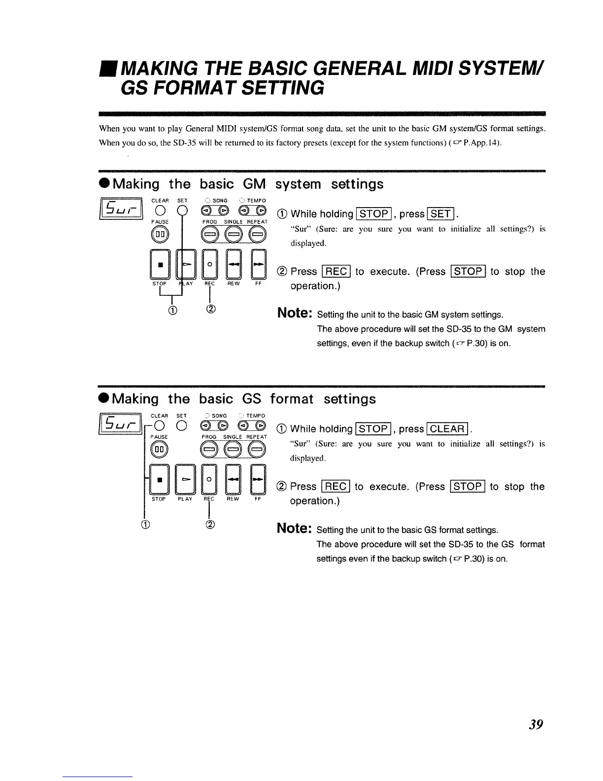 Roland SD-35 - Making the Basic General MIDI System; GS Format Setting; Making the Basic GM System Settings; Making the Basic GS Format Settings