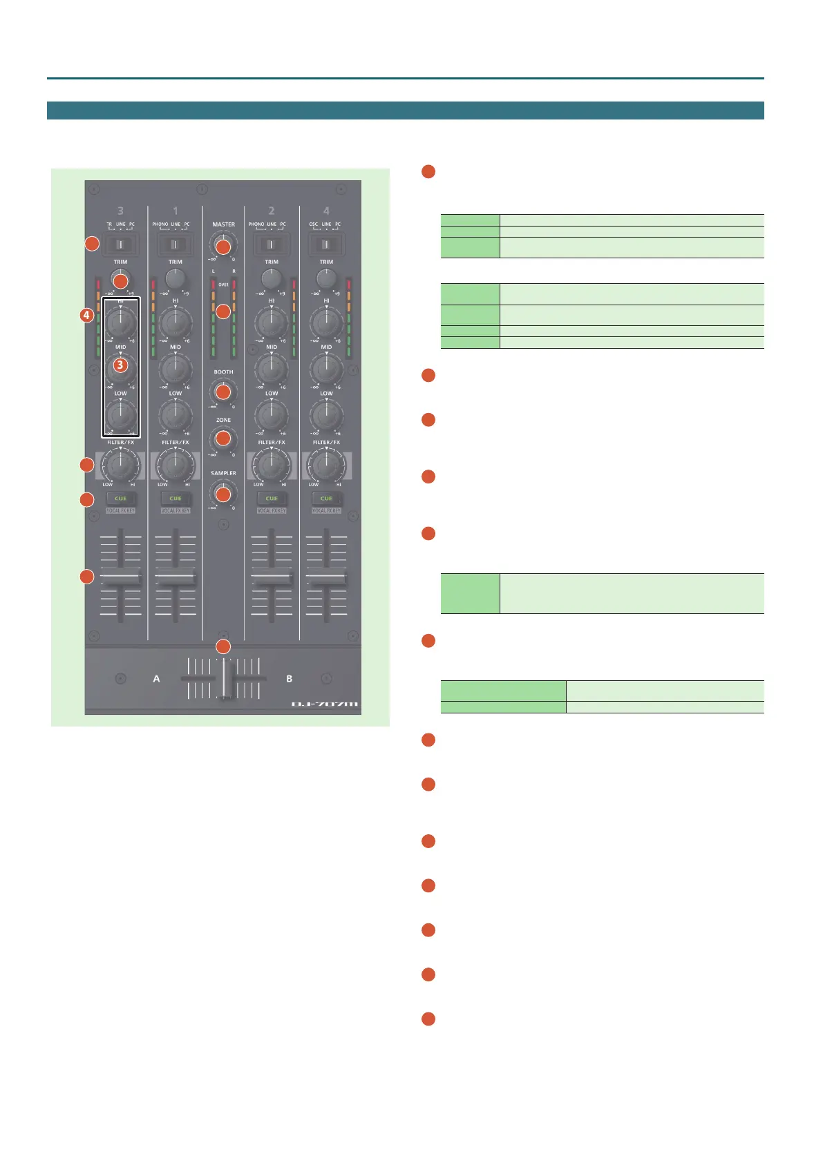 This is a four-channel mixer. Here you can adjust the sound, connect sounds, and turn headphone cue on/o.