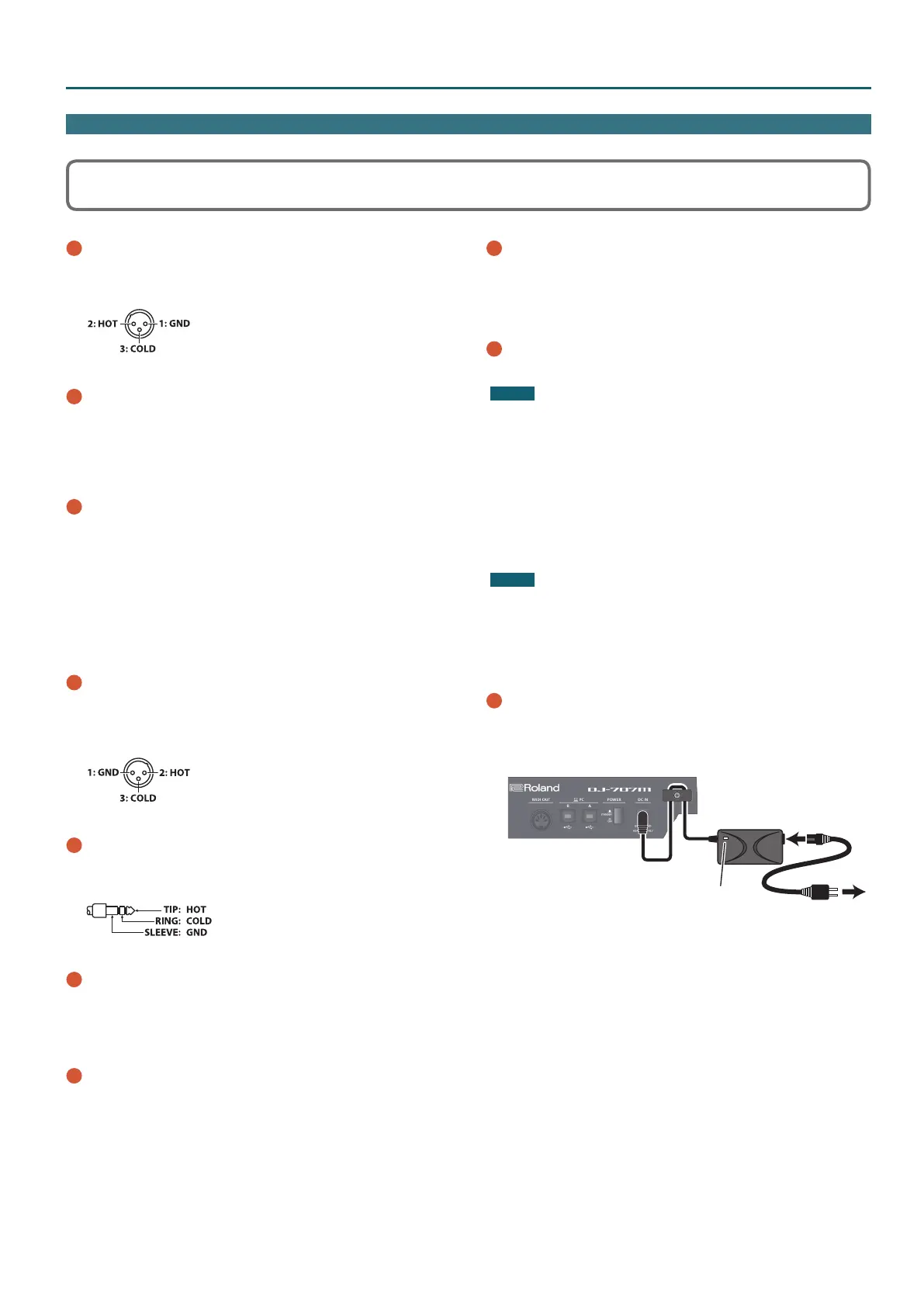 To prevent malfunction and equipment failure, always turn down the volume, and turn o all the units before making any connections.