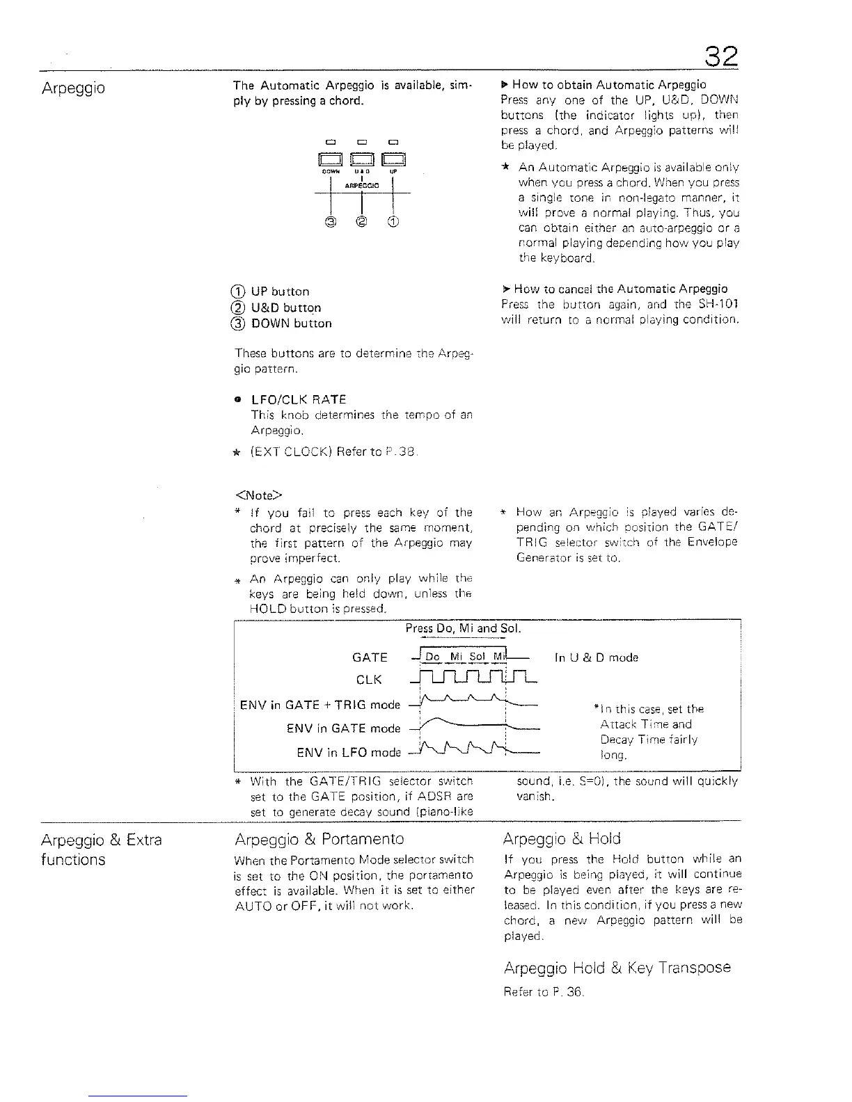 Roland SH-101 - Arpeggio; LFO;CLK Rate; Arpeggio & Extra Functions; Arpeggio & Portamento