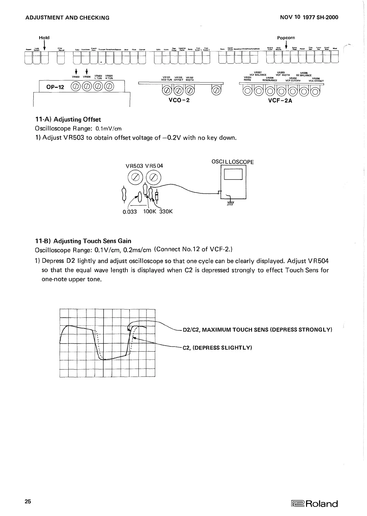 Roland SH-2000 - Adjusting Touch Sens Gain and Offset