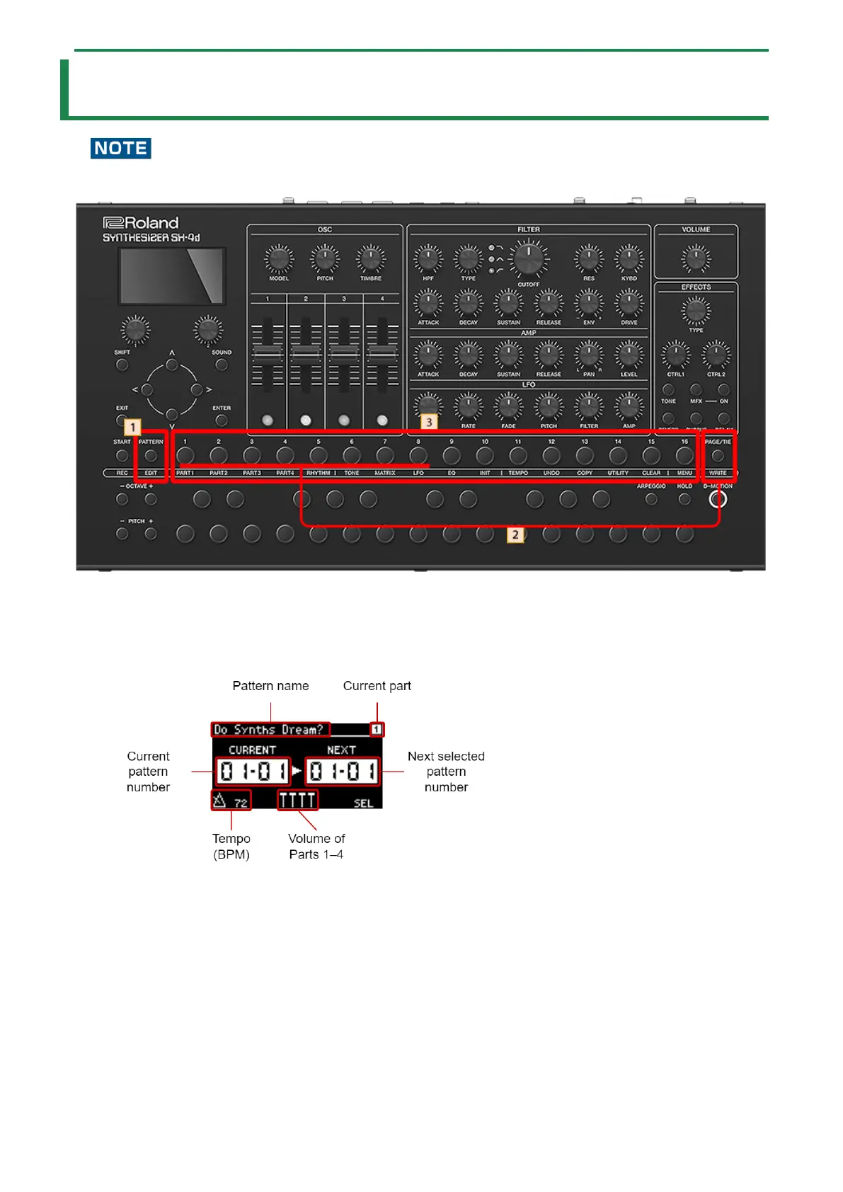 If a pattern is still playing back, the unit switches to the new pattern you select when the current pattern finishes playing