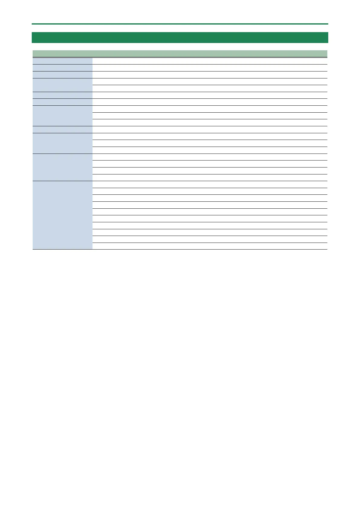 MIDI Implementation Chart (SYSTEM)