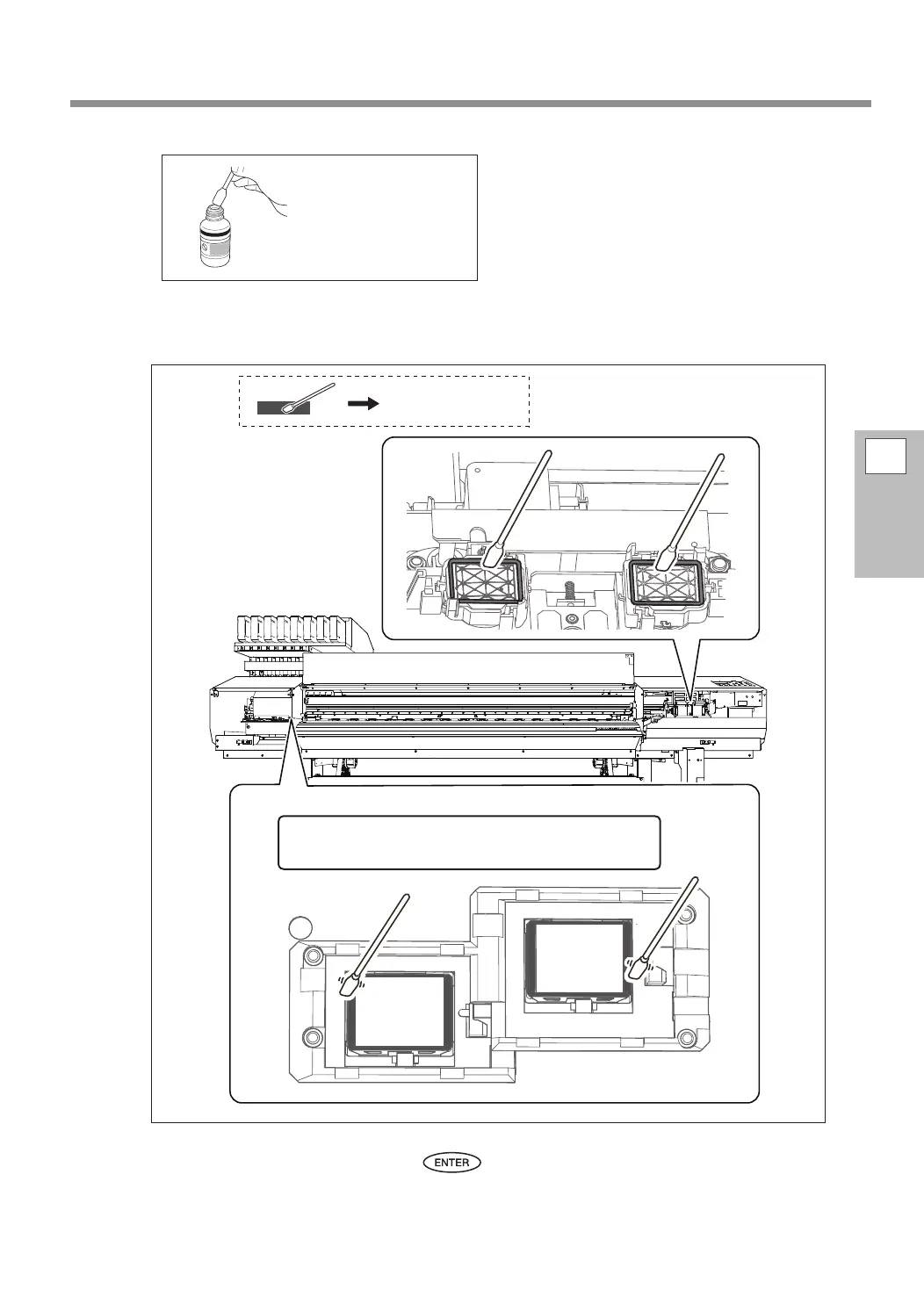 Moisten the cleaning stick with the clean-