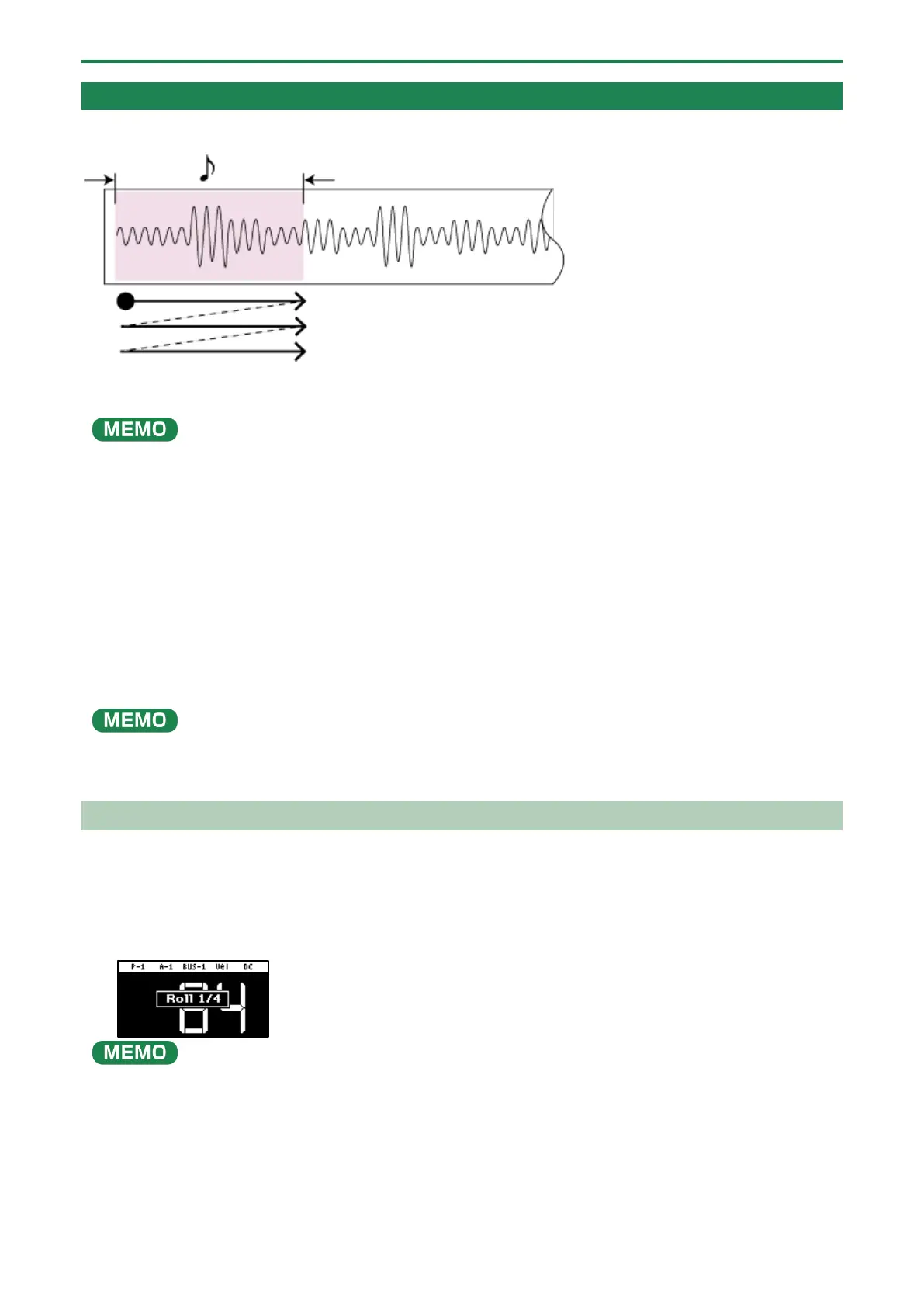 To play rolls with the correct timing, press the [ROLL] button just before the roll should begin, and take your finger off the
