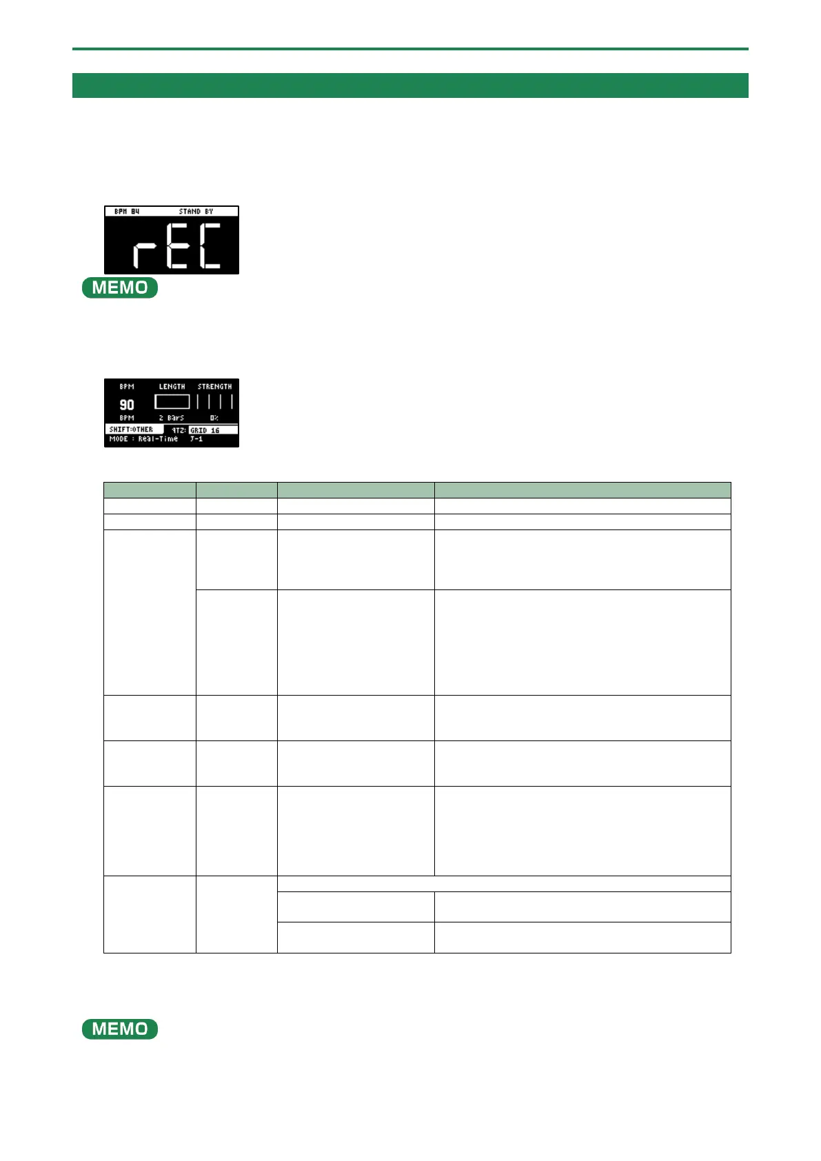 While you’re recording a pattern, the unit switches between rehearsal and recording mode each time you press the [REC]