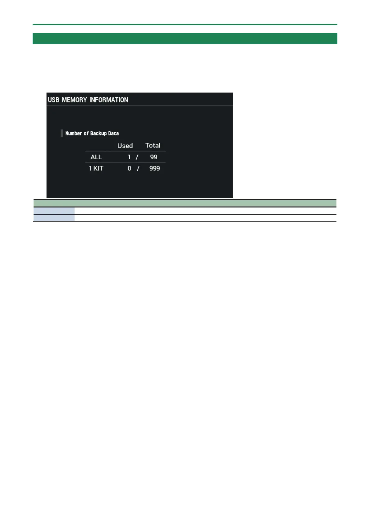 Het USB MEMORY INFORMATION-scherm verschijnt.