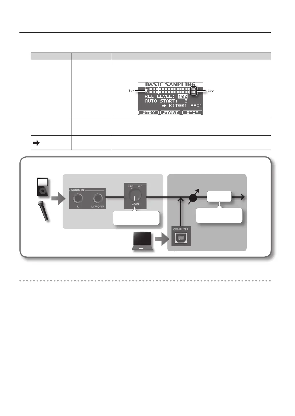 Produce sound on the device that’s connected to the SPD-SX; sampling will begin when the input signal exceeds the level