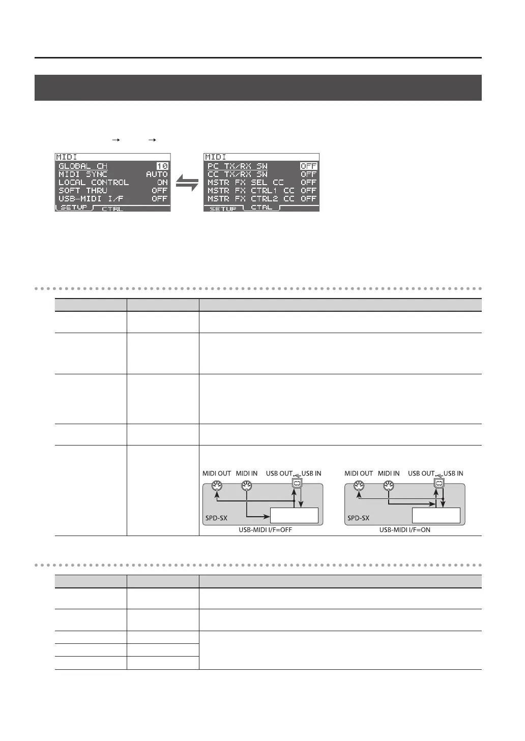 Here you can make overall MIDI settings that apply to the entire SPD-SX. For details on the procedure, refer to “Basic Editing