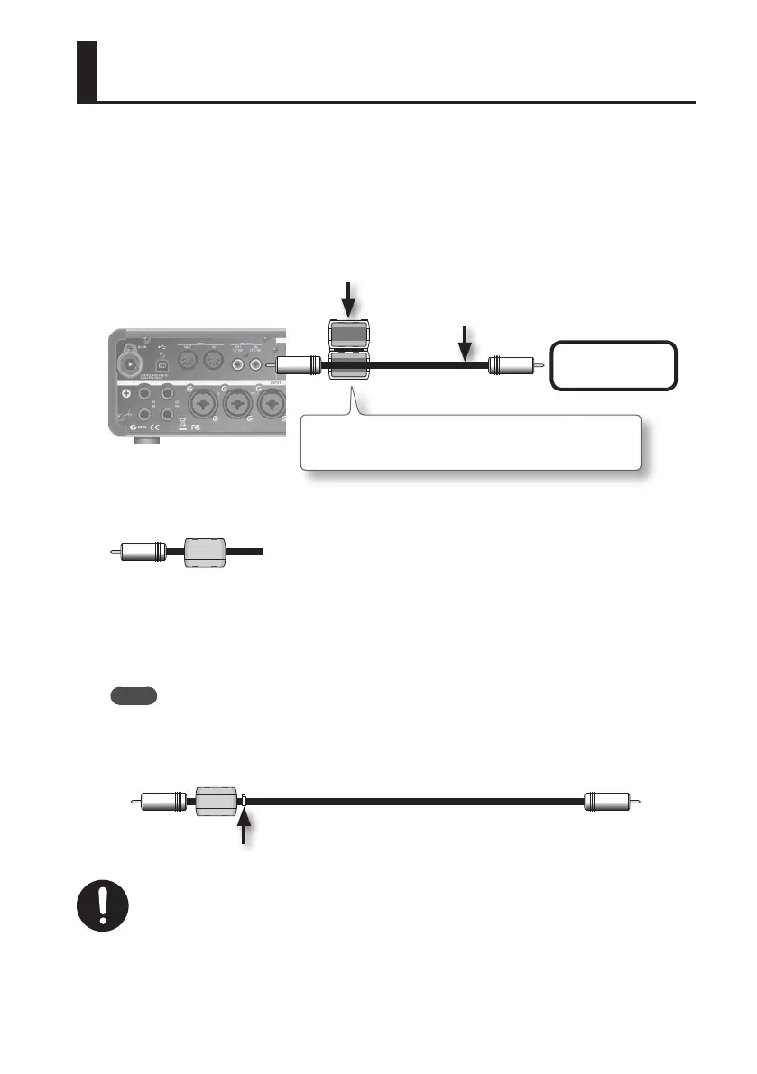 ※ フェライト・コアを取り付けるとき、指などを挟まないようにご注意ください。