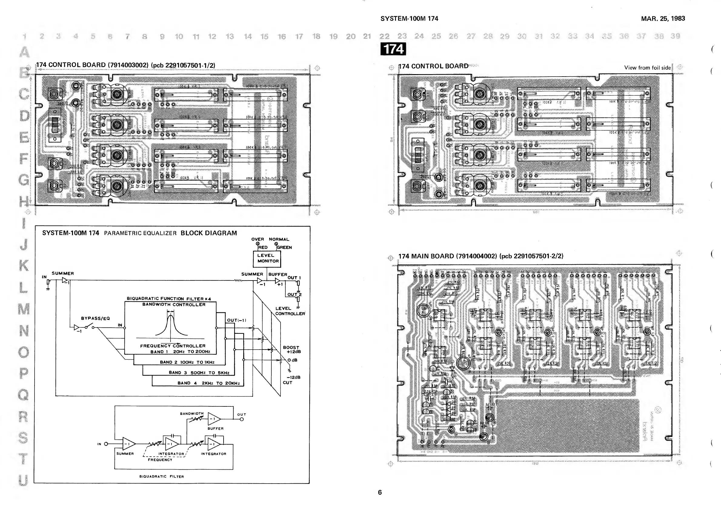 Roland SYSTEM-100M 165 - Module 174 Circuitry Layouts and Block Diagram; Control and Main Board Layouts; Parametric Equalizer Block Diagram