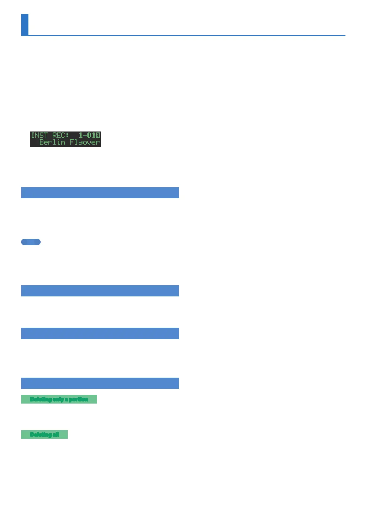 selected by the instrument select buttons [BD]–[OH] are deleted