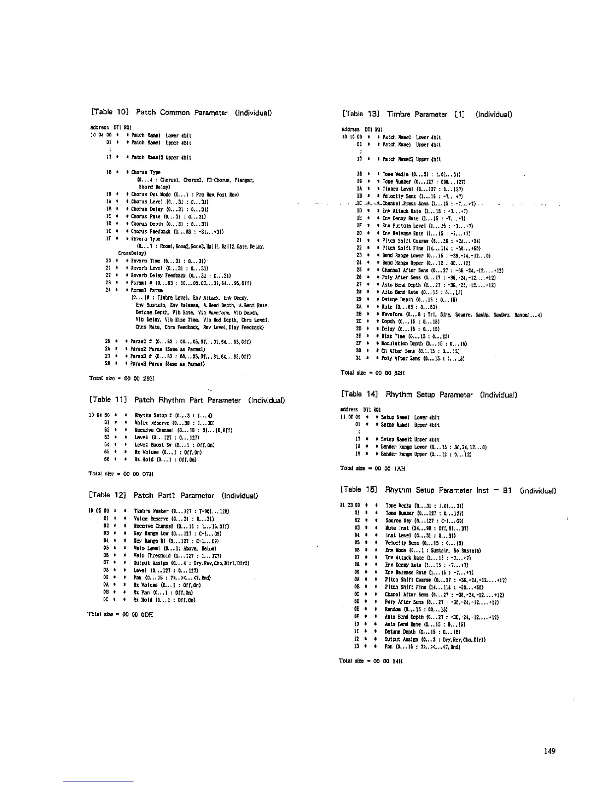 Roland U-220 - Patch Common Parameter (Individual); Patch Rhythm Part Parameter (Individual); Timbre Parameter [1] (Individual); Rhythm Setup Parameter Inst = B1 (Individual)