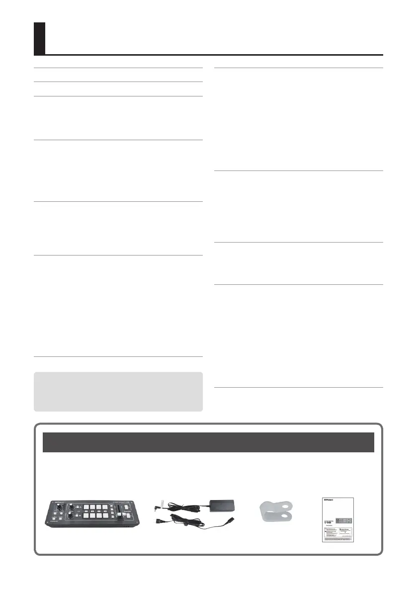 been included with the V-1HD. If you nd that any item is missing, contact the nearest authorized Roland