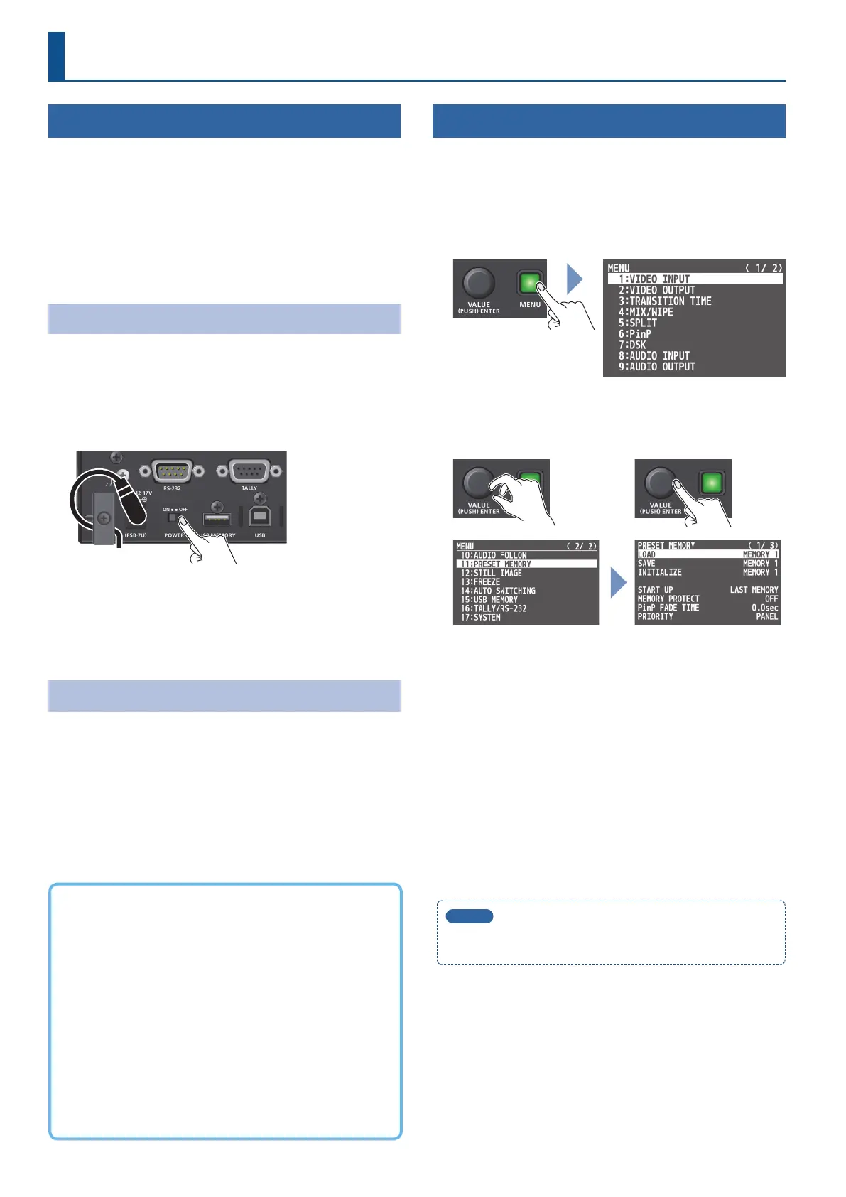 The menu is shown on the monitor that’s connected to the OUTPUT