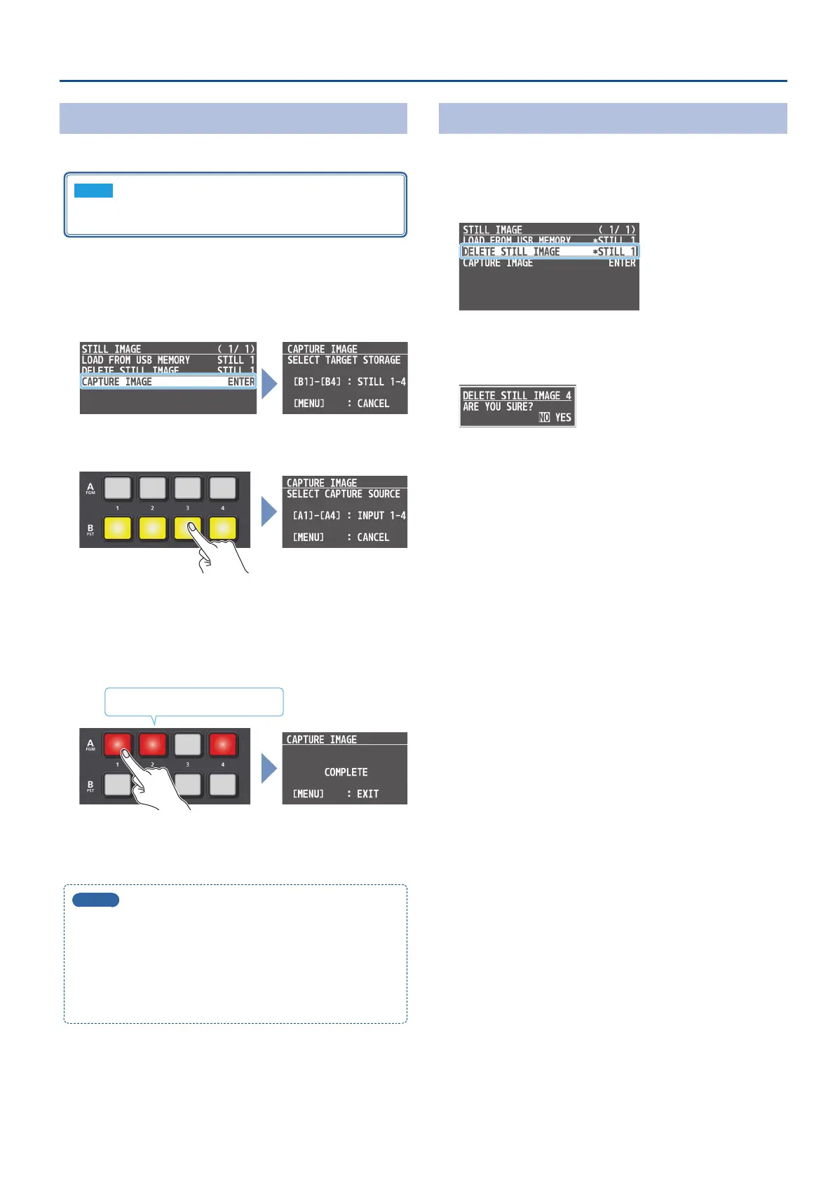 destination memory (STILL 1–4) for the captured still image.