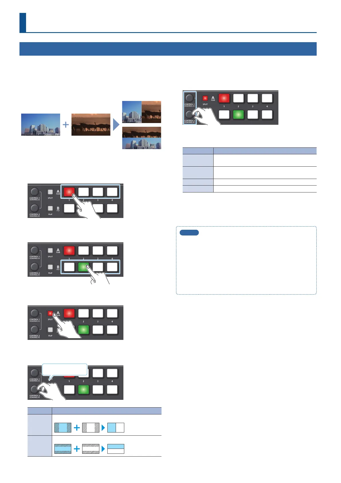 When both split and PinP compositing (p. 25) are on, use the