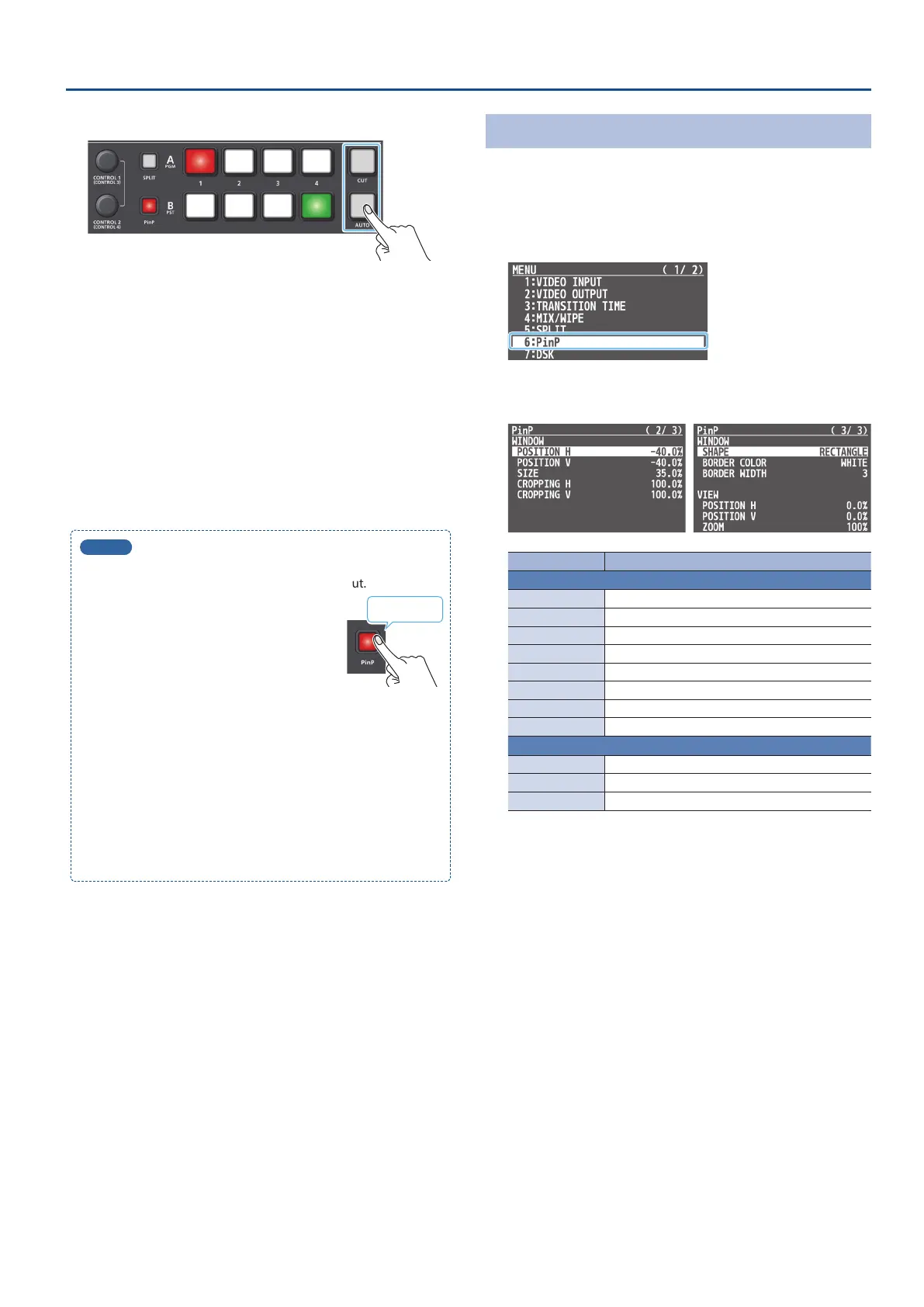 7. To turn o PinP compositing, press the [AUTO] or [CUT]