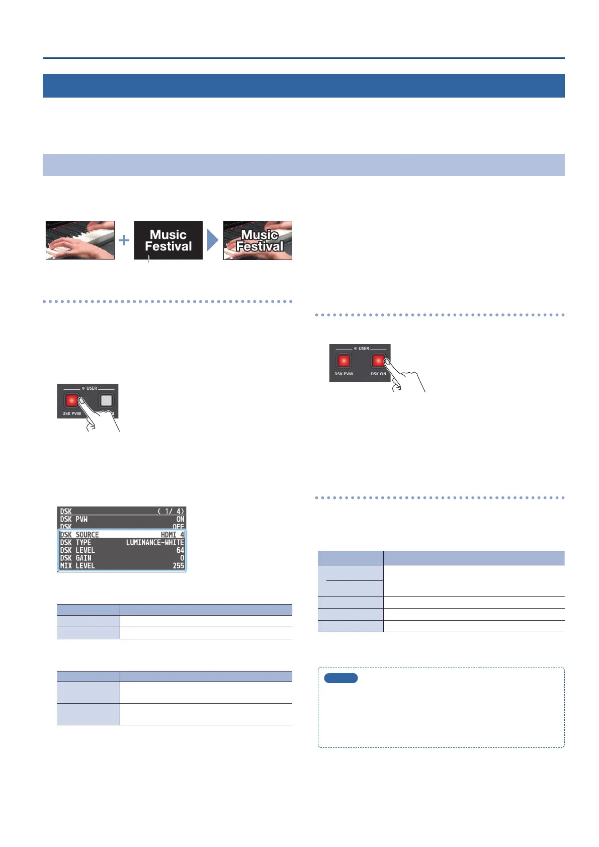1. Press the [DSK ON] button to turn on DSK compositing (lit).