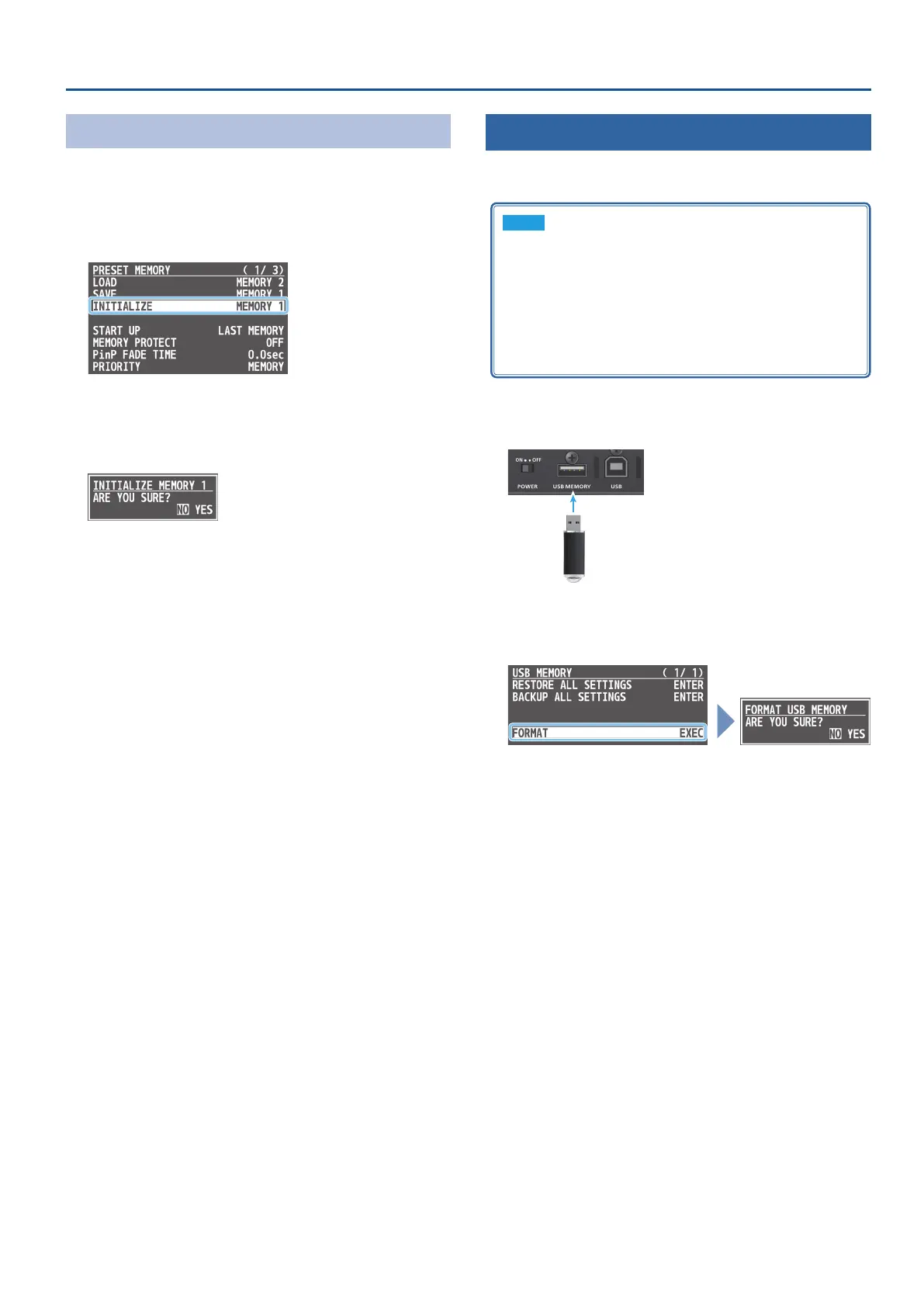 (MEMORY 1–8) that you want to initialize, and press the