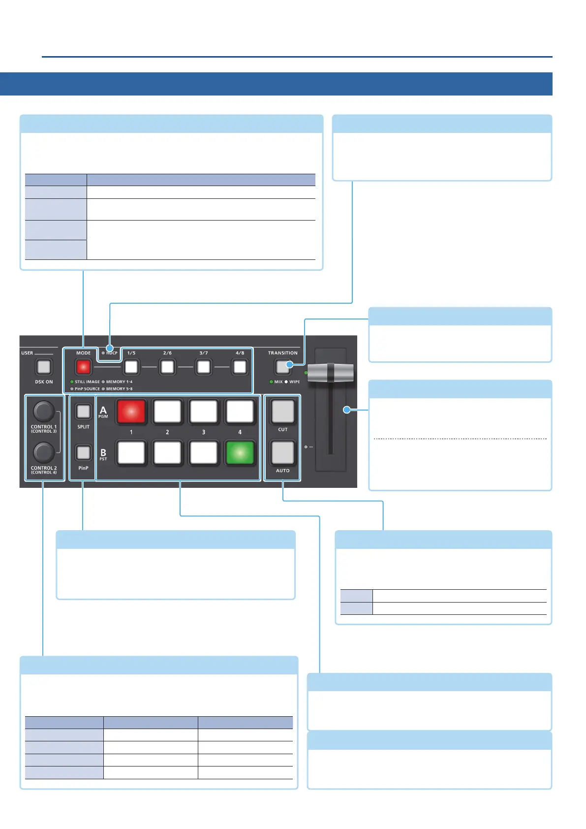 Use the [MODE] button to select the function of the [1/5]–[4/8] buttons.