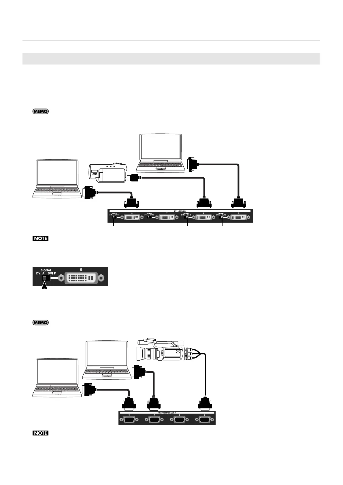 this switch is set incorrectly, you will not have any input signal. When [DVI-A] has been selected, analog RGB can also be connected. In such cases,