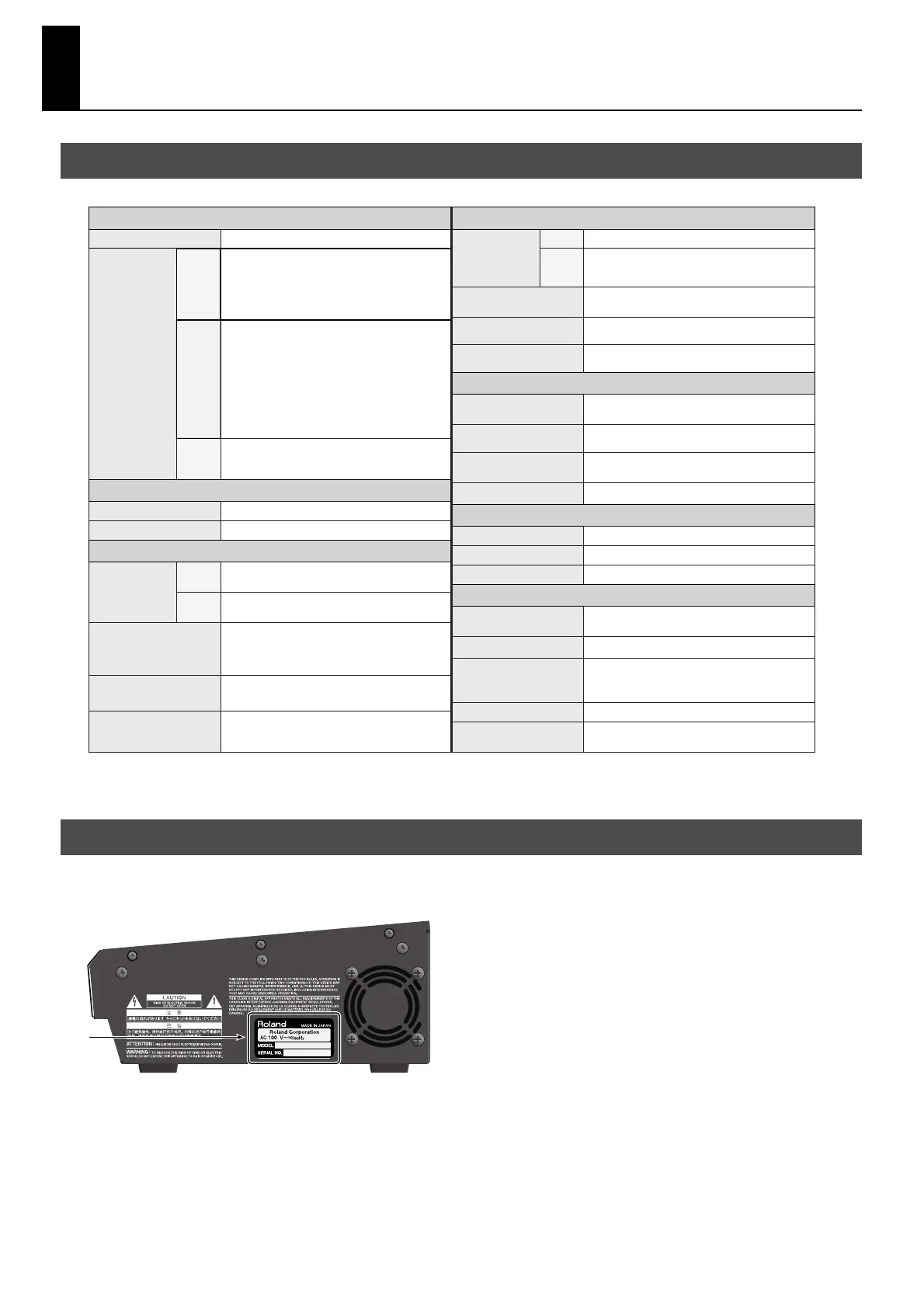 A name plate bearing the power consumption, model name, and serial number of this product is attached at the location shown