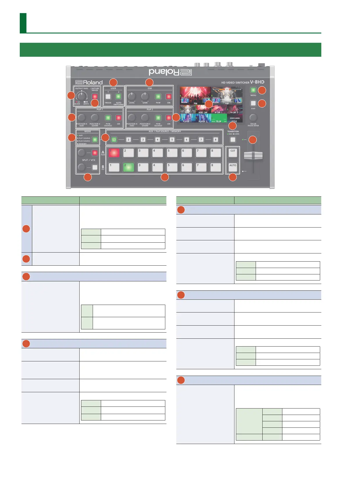 Switches the functioning of the AUX / PinP