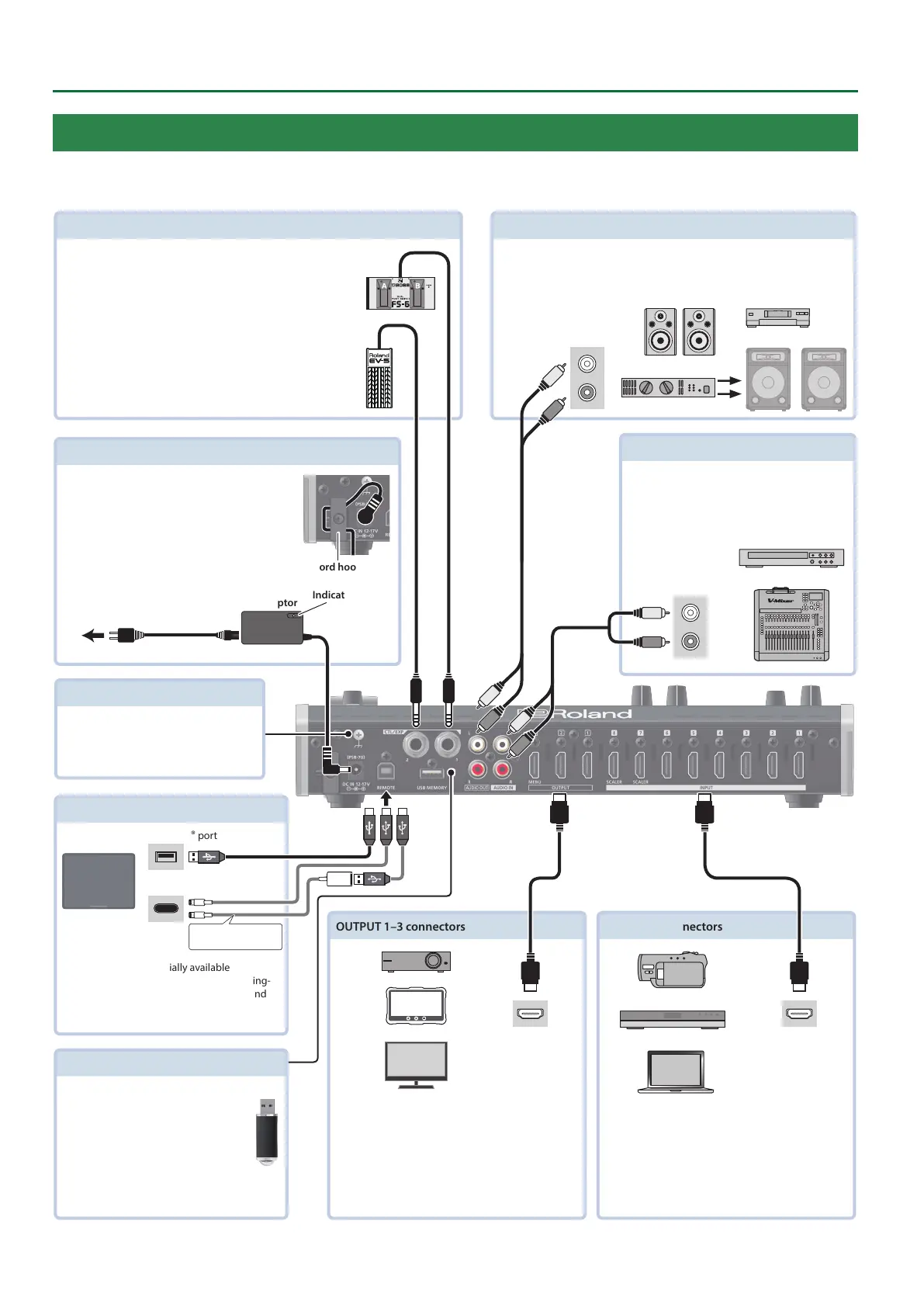* Be sure to use cables and adaptor plugs with the proper connectors matching those of the other devices you are using.