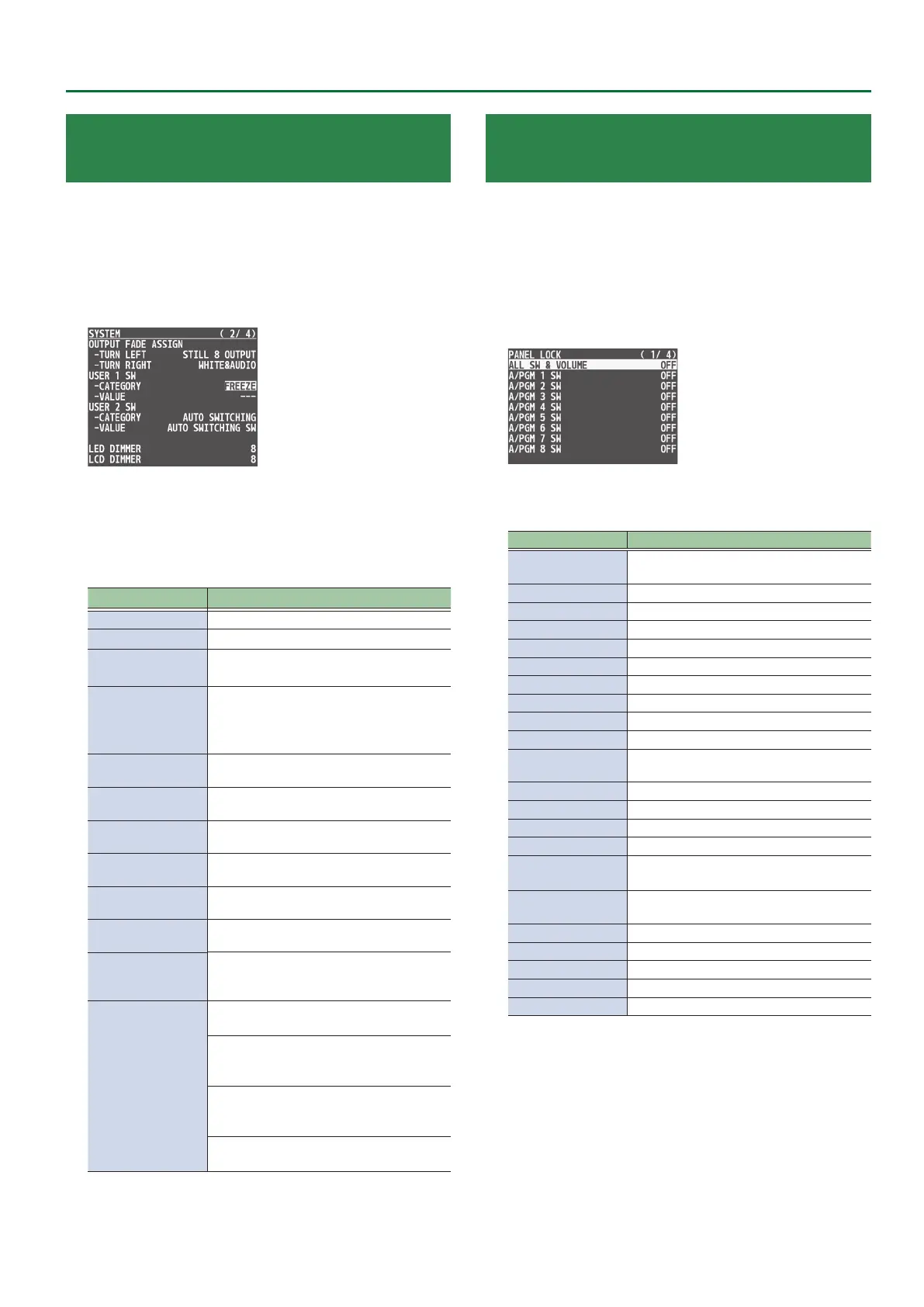 USER 1 SW or USER 2 SW “CATEGORY” and “VALUE,”