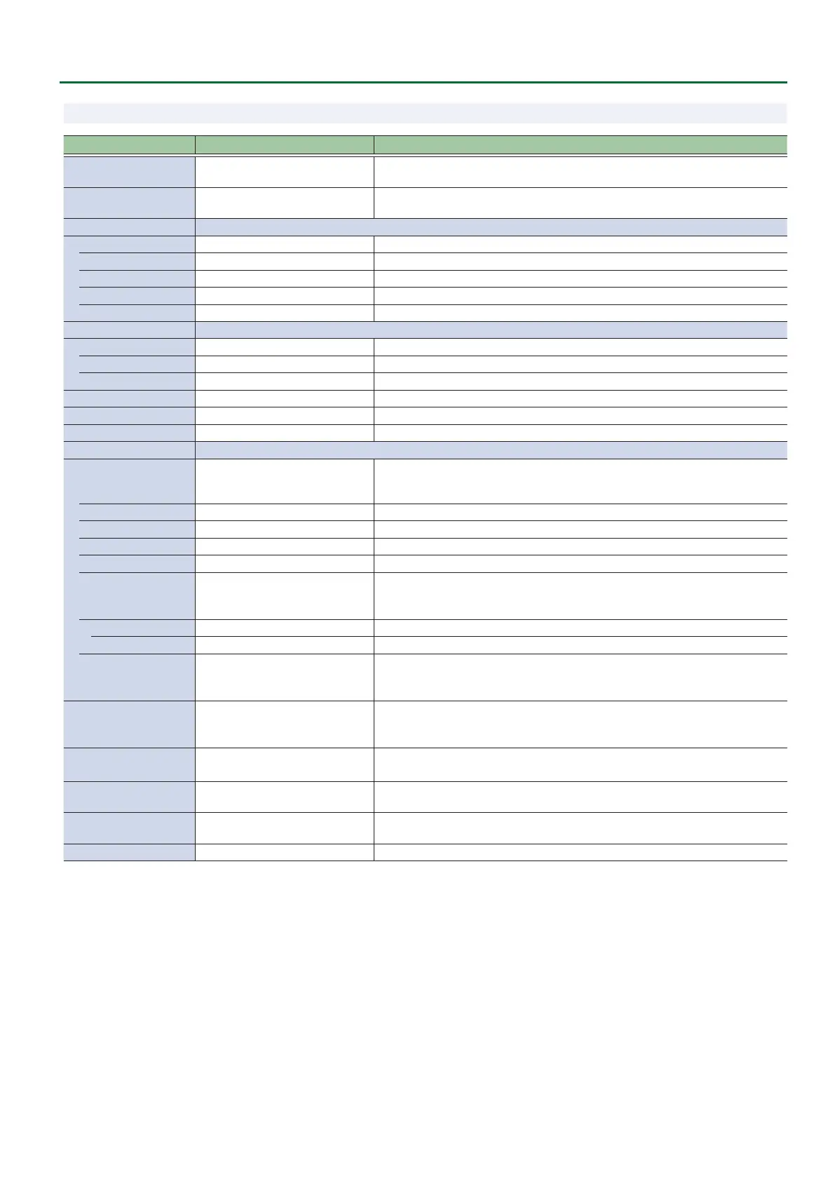 Menu item Value (Bold: default) Explanation