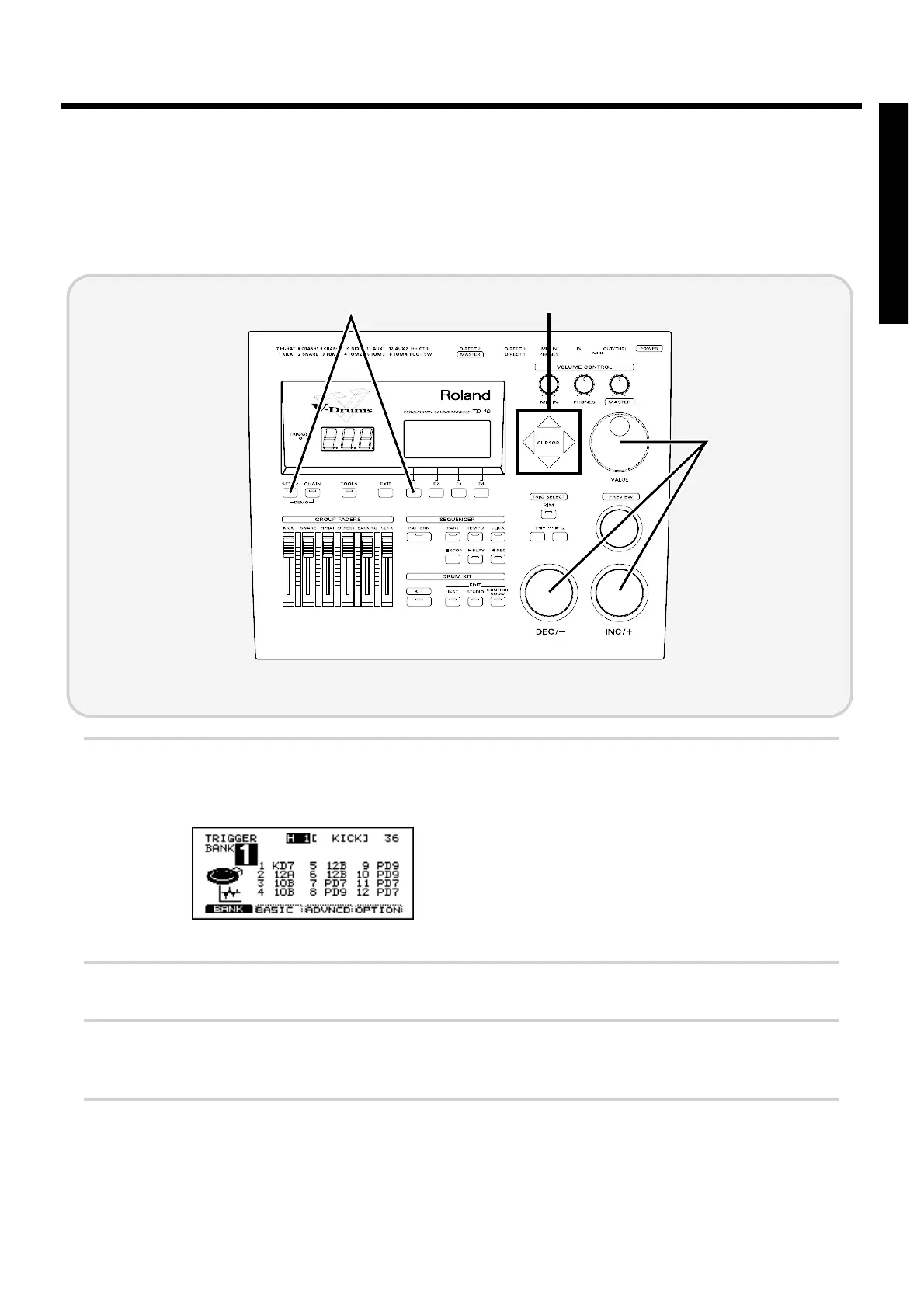 First refer to p. 142 and attach the drum trigger. When you have done so, make the following set-