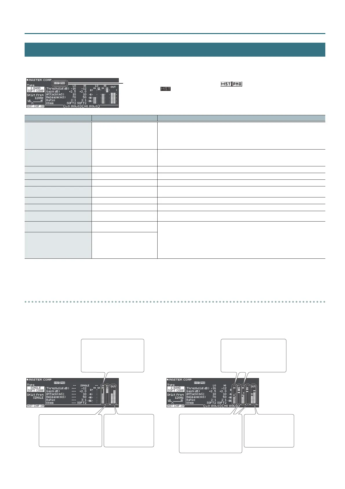 * If the routing setting (p. 36) Master Out is “DIRECT,” the master compressor does not apply to the sound that is output from the MASTER OUT jacks.